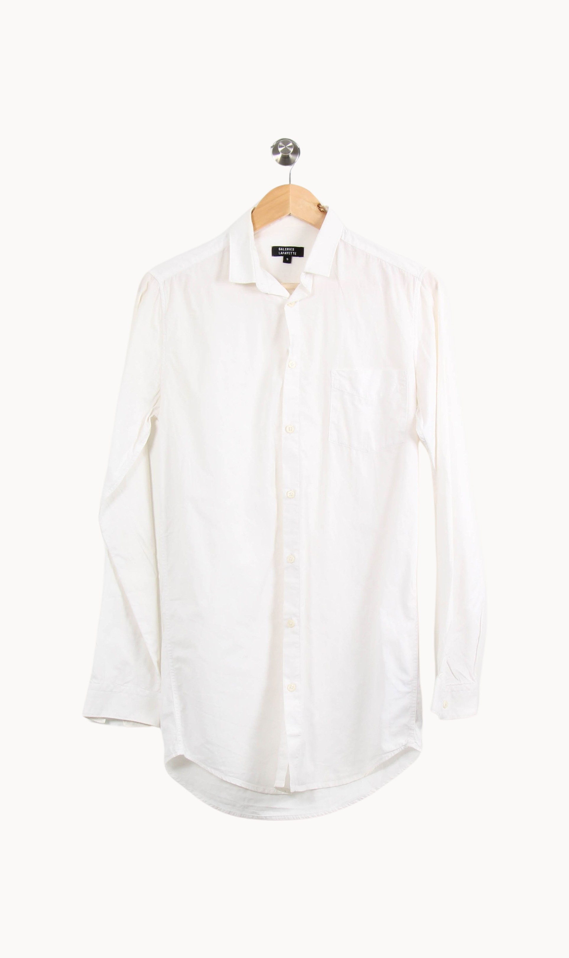 Chemise blanche Galeries Lafayette, taille S/36, à manches longues et col classique, idéale pour un style intemporel et élégant. Confectionnée dans une matière légère et agréable à porter, cette chemise se distingue par ses finitions sobres et soignées ainsi que sa poche poitrine discrète, apportant une touche de raffinement. Parfait pour accompagner une tenue professionnelle ou sublimer un look casual-chic lors d’un dîner en ville.