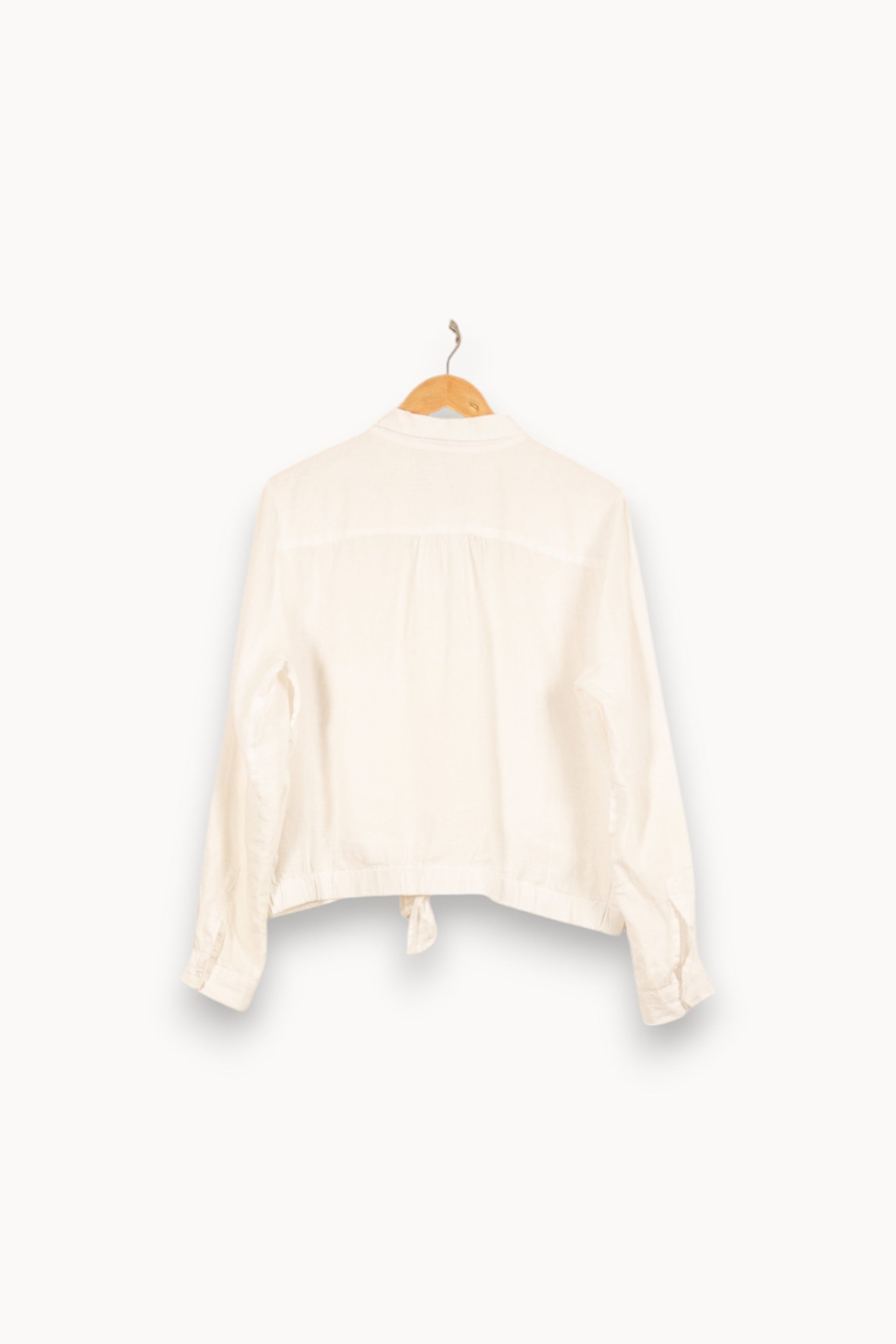 Chemise blanche Caroll en taille XXL/44, modèle à manches longues avec un nœud à la taille. Confectionnée dans une matière légère, cette chemise arbore une fermeture boutonnée discrète et un col classique, sublimée par le détail du nœud apportant une touche raffinée. Parfaite pour une journée décontractée au bureau ou un brunch printanier en ville.