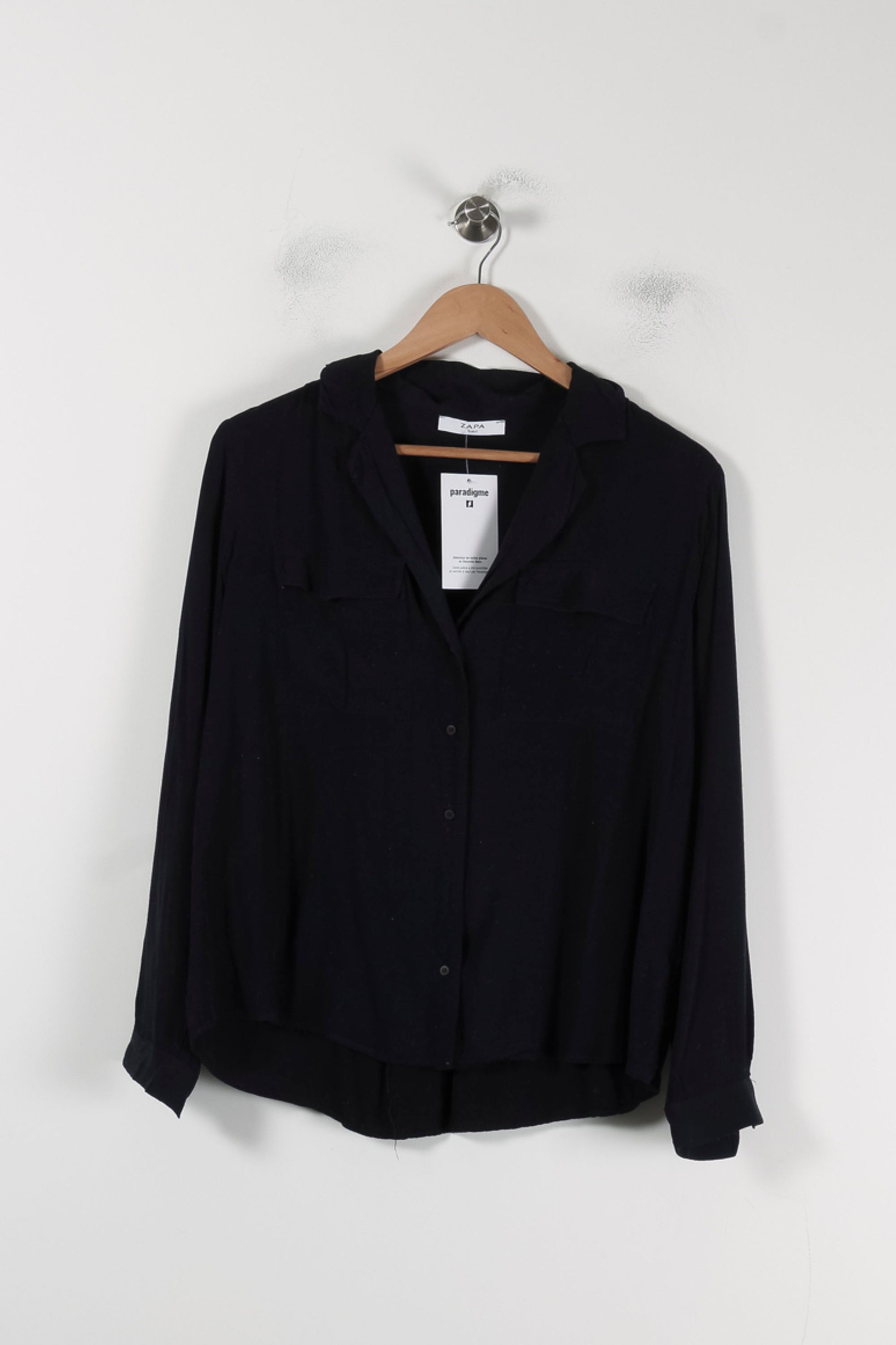 Chemise bleu foncé ZAPA, taille L/40, au design fluide et manche longue, idéale pour une garde-robe élégante et fonctionnelle. Sa coupe légèrement ample et ses poches poitrine apportent une note moderne et sophistiquée, tandis que les boutons ton sur ton et le col classique accentuent la sobriété du modèle. Parfaite pour un rendez-vous professionnel ou une sortie décontractée en ville.