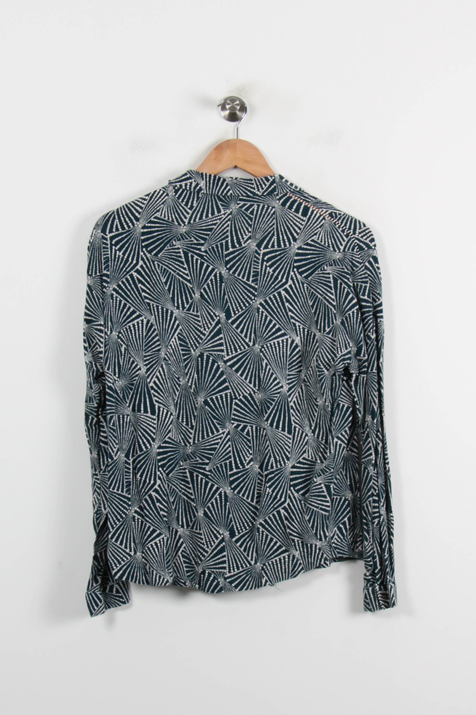 Top multicolore Suncoo taille M/38, arborant un motif graphique original qui dynamise la silhouette. Confectionné dans une matière fluide à l'imprimé géométrique, ce haut séduit par ses détails soignés et son col classique, offrant une note d'élégance contemporaine. Idéal à porter lors d'une journée au bureau ou pour une sortie urbaine, associé à un pantalon neutre ou une jupe.