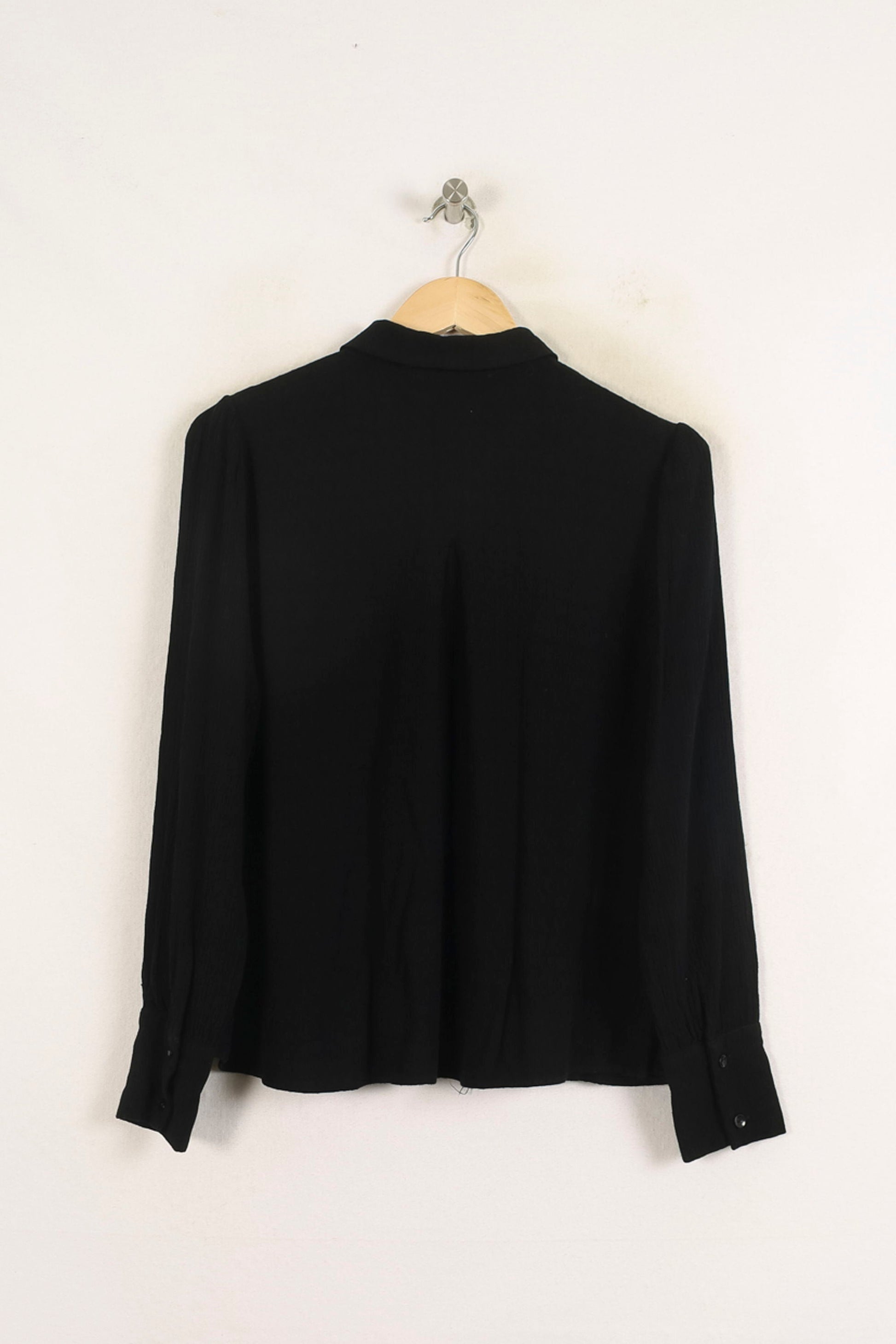 Chemise noire La Fée Maraboutée, taille XL/42, à manches longues et col classique : un incontournable élégant de la marque. Confectionnée dans une matière fluide, elle se distingue par ses finitions soignées, une patte de boutonnage discrète et des poignets raffinés qui soulignent l’allure sophistiquée de ce top. Parfaite pour une réunion professionnelle ou une sortie citadine chic.