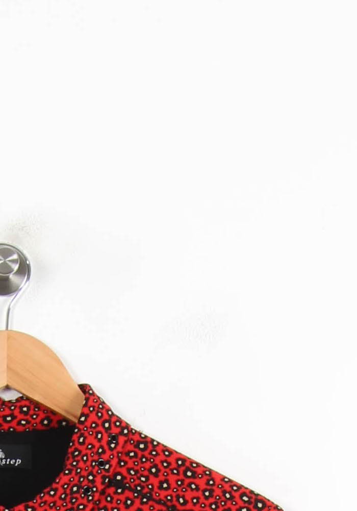 Chemisier rouge à motifs fleuris One Step, taille XL/42, élégant top à manches longues alliant modernité et raffinement. Ce modèle se distingue par sa matière fluide et légère, ainsi que par son imprimé graphique noir et blanc sur fond rouge vibrant, lui conférant une touche d’originalité et de caractère. Parfait pour une journée au bureau ou un déjeuner entre amis, ce chemisier apporte une note chic et colorée à toutes vos tenues.