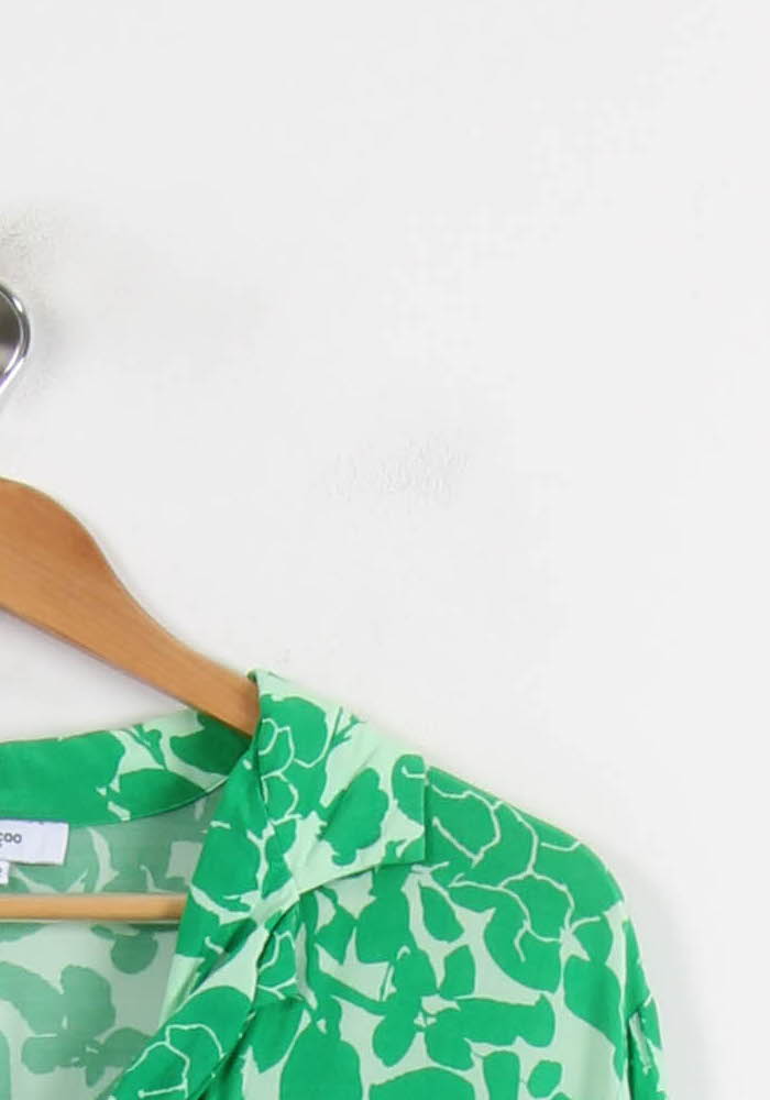 Blouse à motifs floraux verts Suncoo, taille M/38, élégante et moderne, idéale pour sublimer votre garde-robe au quotidien. Confectionnée dans une matière fluide et légère, elle se distingue par son imprimé floral audacieux ainsi que sa coupe droite avec col chemise, offrant une touche de fraîcheur et de raffinement à votre silhouette. Parfaite pour une journée au bureau ou un déjeuner en ville, cette blouse apportera une note de sophistication tout en restant confortable.