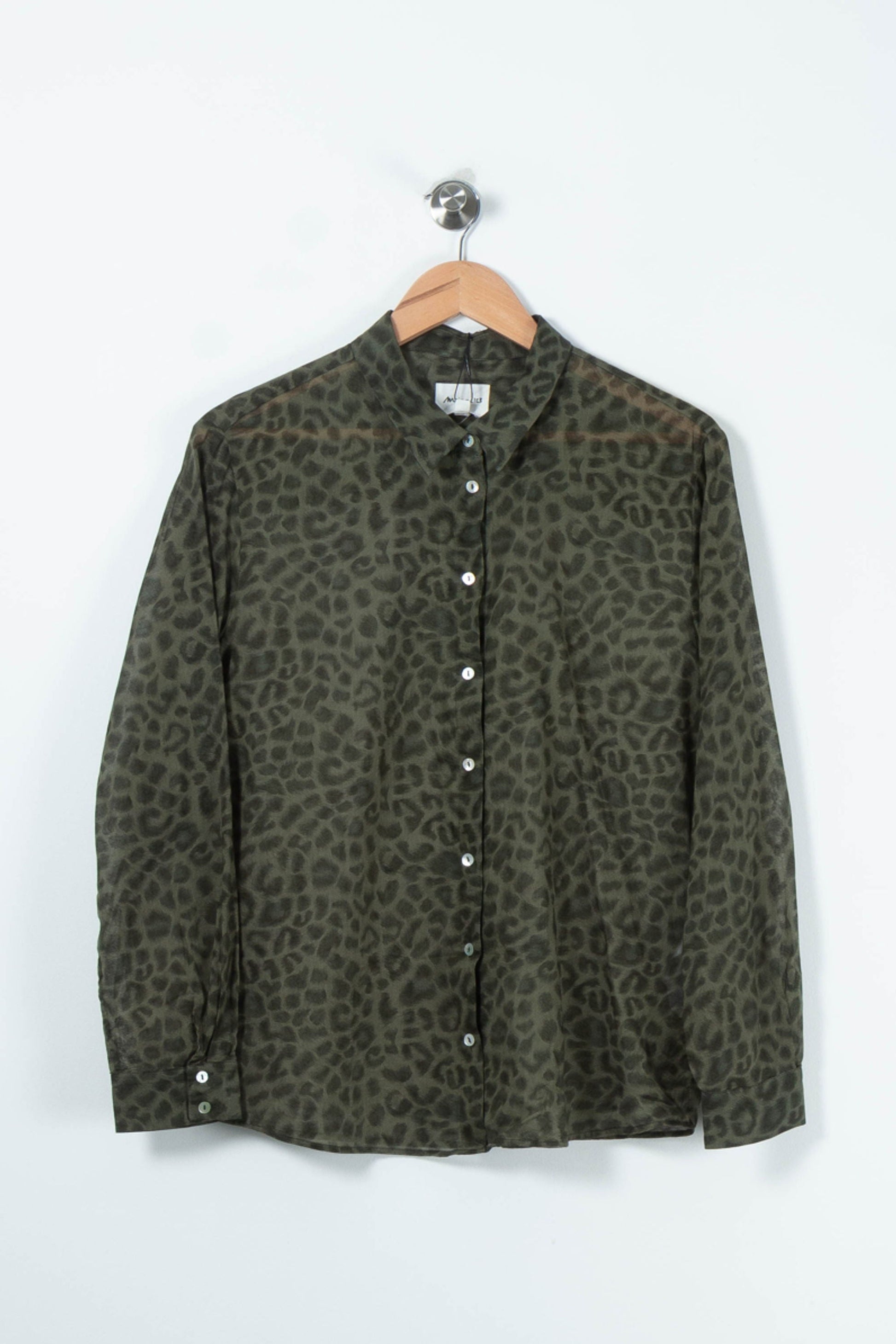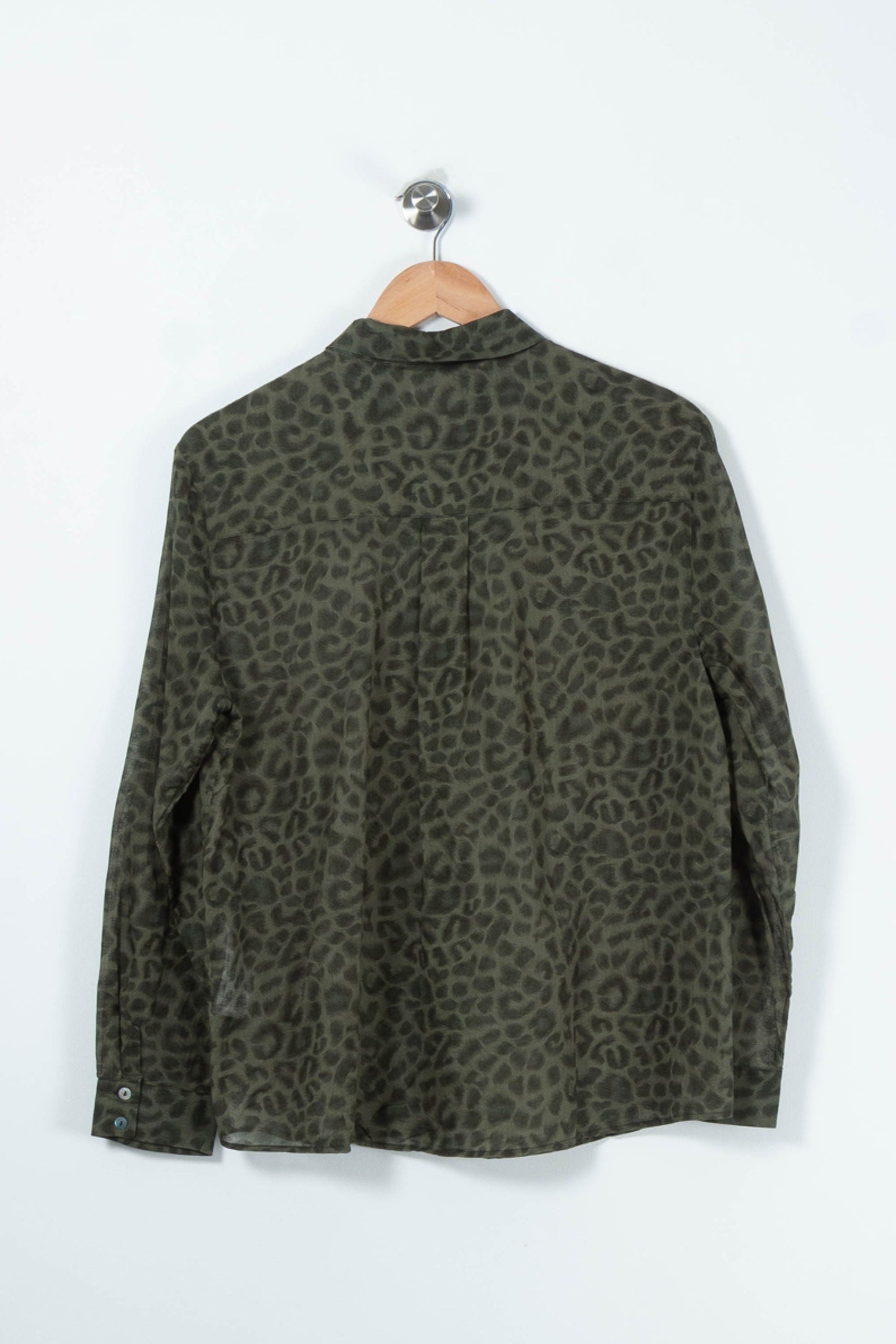 Chemise imprimée léopard vert, Maison 123, Taille L/40 – Top élégant à manches longues. Confectionnée en 100% coton, cette pièce allie confort naturel et modernité grâce à son motif léopard subtil et ses boutons contrastés, offrant une touche d’originalité raffinée. Idéale pour un look sophistiqué lors d’une journée de travail ou d’un déjeuner chic en ville.