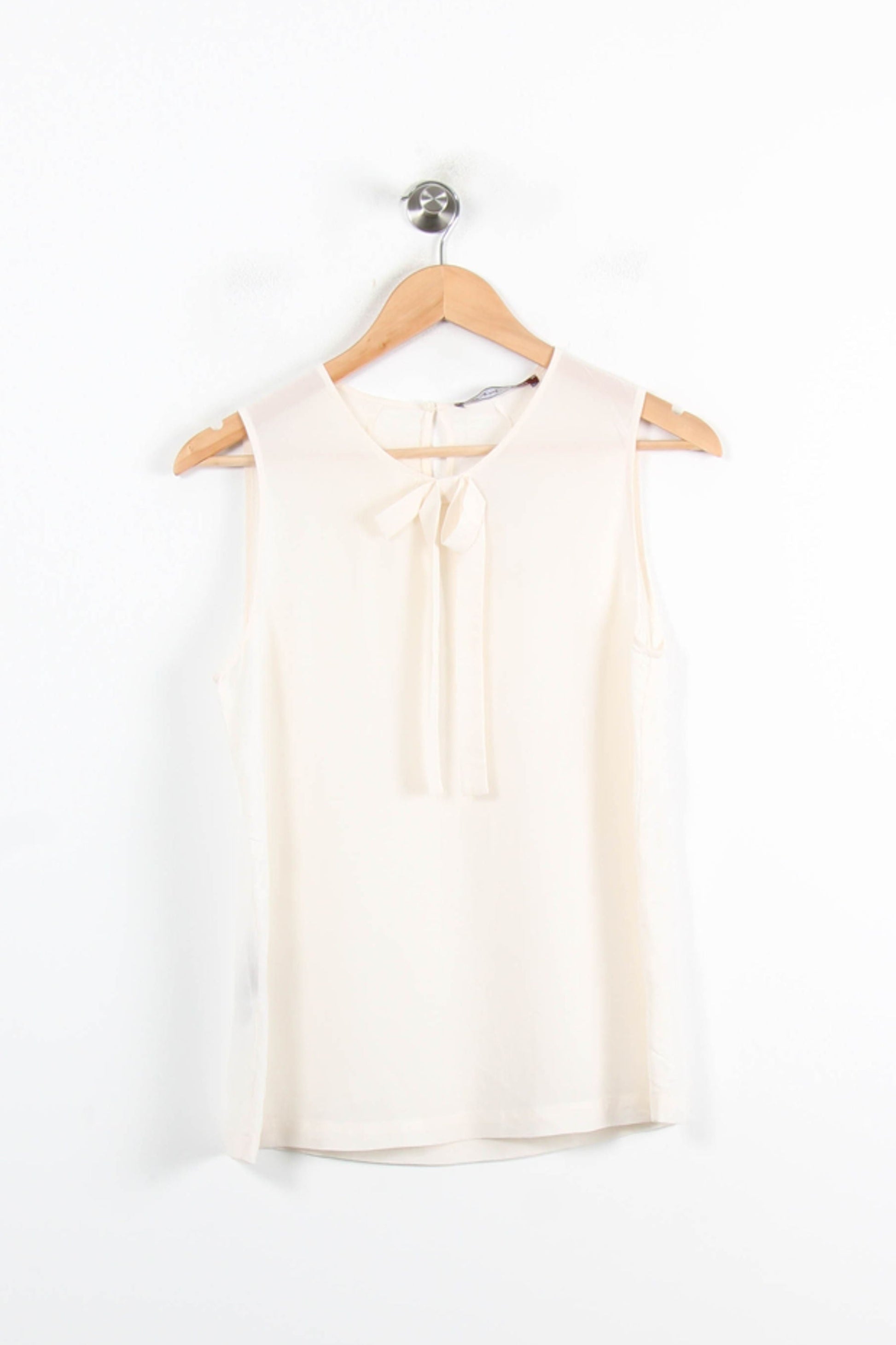 Top sans manches beige Comptoir des Cotonniers, taille M/38. Confectionné dans une matière légère, ce haut se distingue par son nœud délicat au col qui lui apporte une touche féminine et raffinée. Idéal pour une journée de travail élégante ou un déjeuner en terrasse.