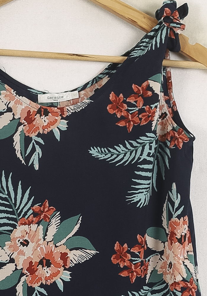 Top fleuri Garance Paris bleu, taille S/36, affiche un imprimé floral coloré et des nœuds aux épaules pour une touche féminine et estivale. Confectionné dans une matière fluide et légère, il se distingue par ses motifs floraux éclatants, ses finitions soignées et ses détails de nouage qui apportent confort et originalité. Idéal pour une sortie décontractée ou un déjeuner en terrasse lors des beaux jours.