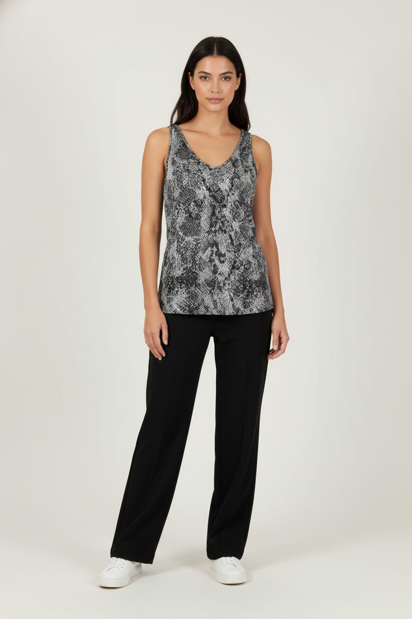 Top sans manches gris effet python The Kooples en taille S/36. Confectionné dans un mélange de 64% polyester et 36% coton, ce haut se distingue par son motif serpent audacieux et son encolure légèrement dégagée, offrant une touche de modernité et d’originalité à votre garde-robe. Idéal pour une soirée entre amis ou un look de journée chic et décontracté.