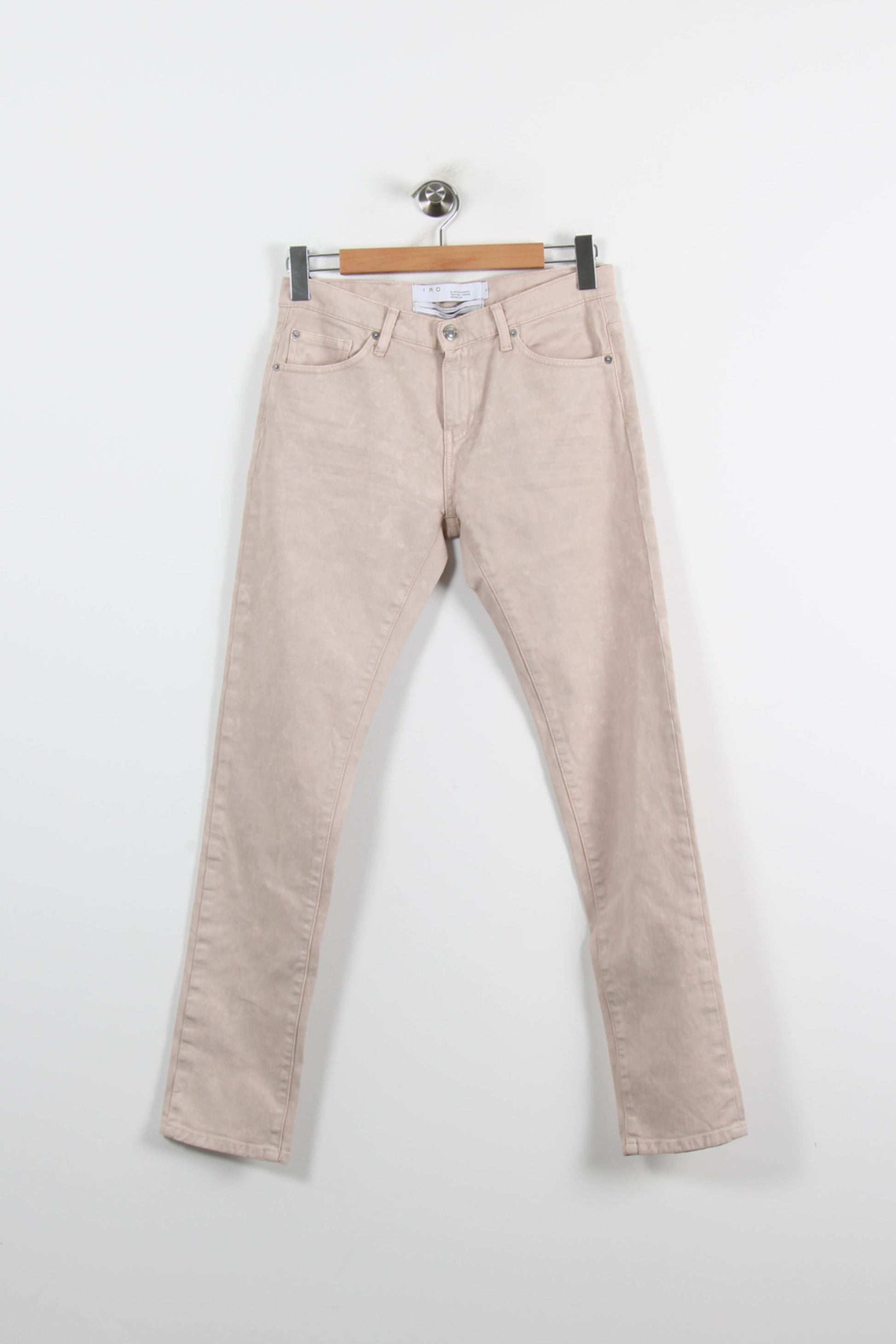 Jean slim beige IRO, taille S/36, un essentiel moderne signé par la marque reconnue pour son style parisien. Confectionné dans une toile à l’aspect légèrement velouté, ce pantalon se distingue par sa coupe ajustée et ses finitions soignées, offrant une allure élégante et décontractée. Ce jean est idéal pour une journée en ville ou un rendez-vous décontracté, associé à une chemise fluide ou un pull léger.