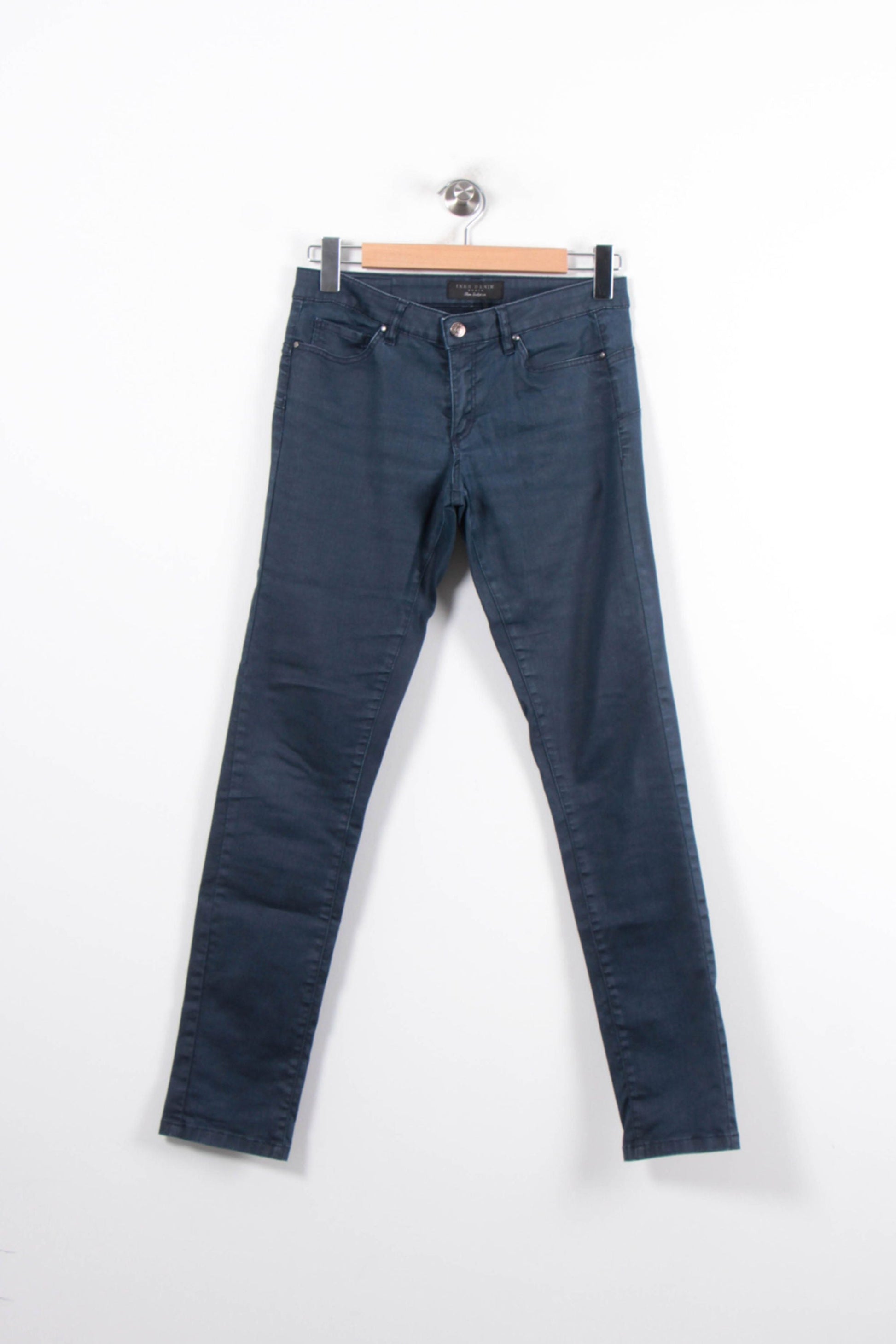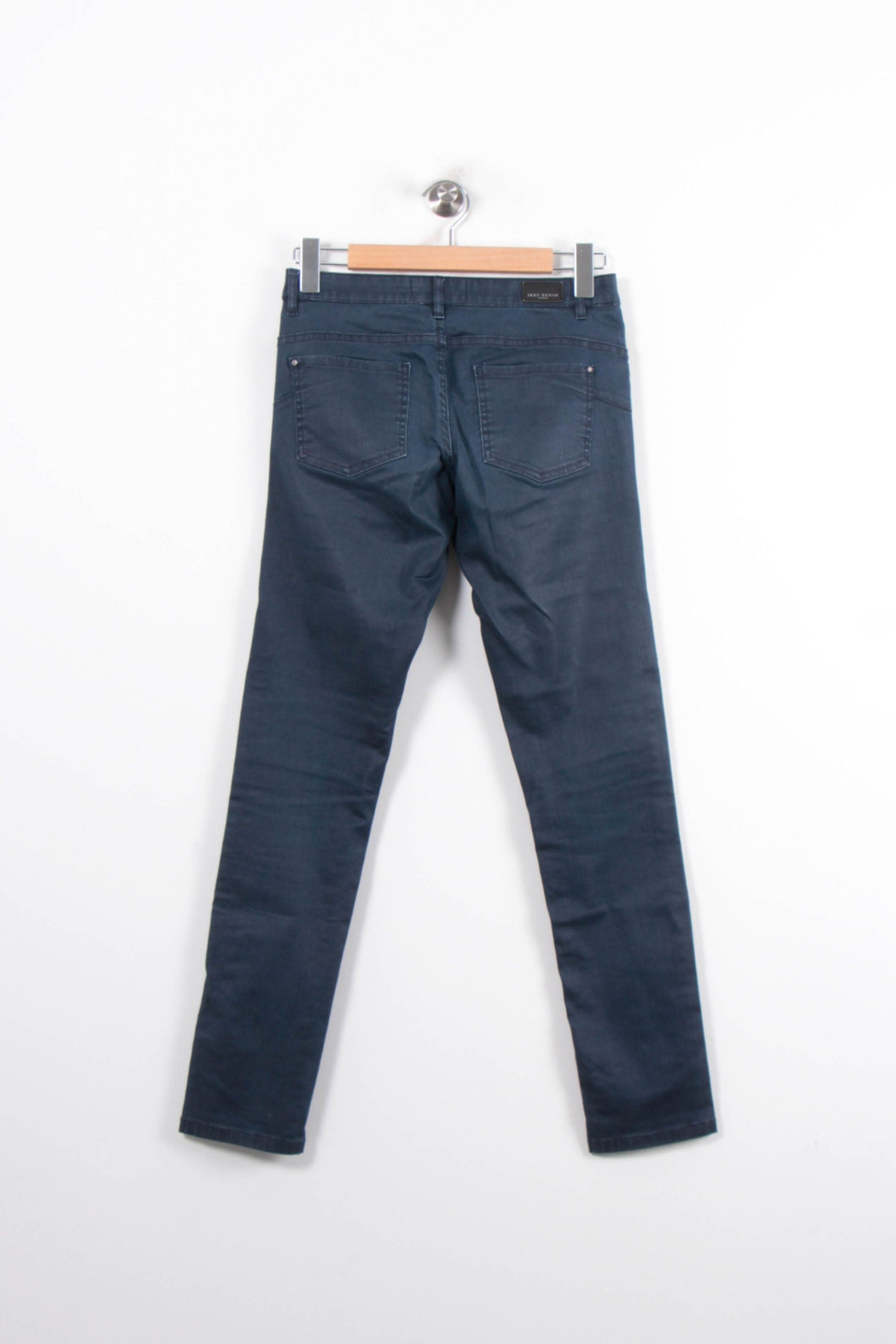 Jean slim bleu IKKS, taille M/38, idéal pour une silhouette élancée tout en confort. Confectionné dans une toile de qualité, ce pantalon présente une teinte bleu profond et des finitions soignées, apportant une touche moderne à un basique indispensable. Parfait pour une journée de travail ou une sortie décontractée en ville.