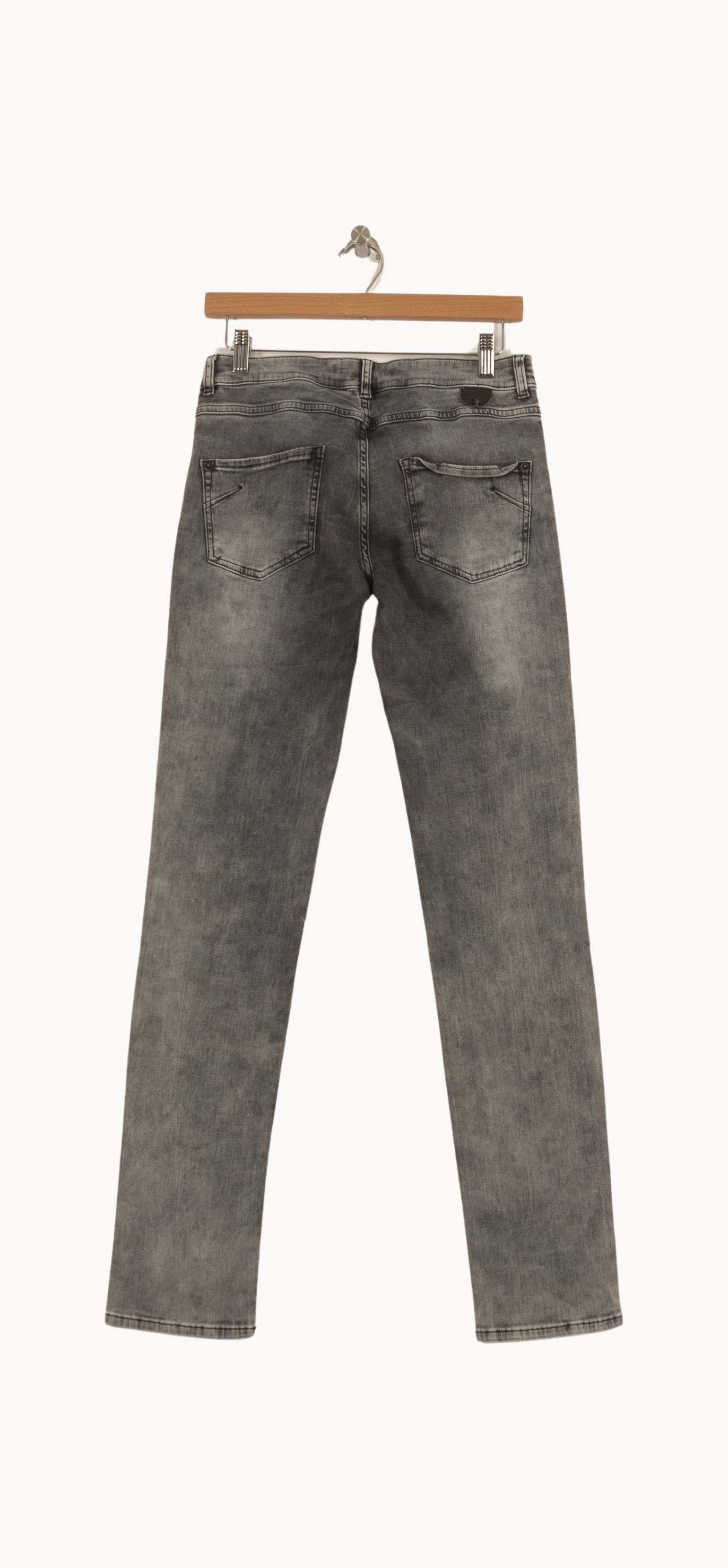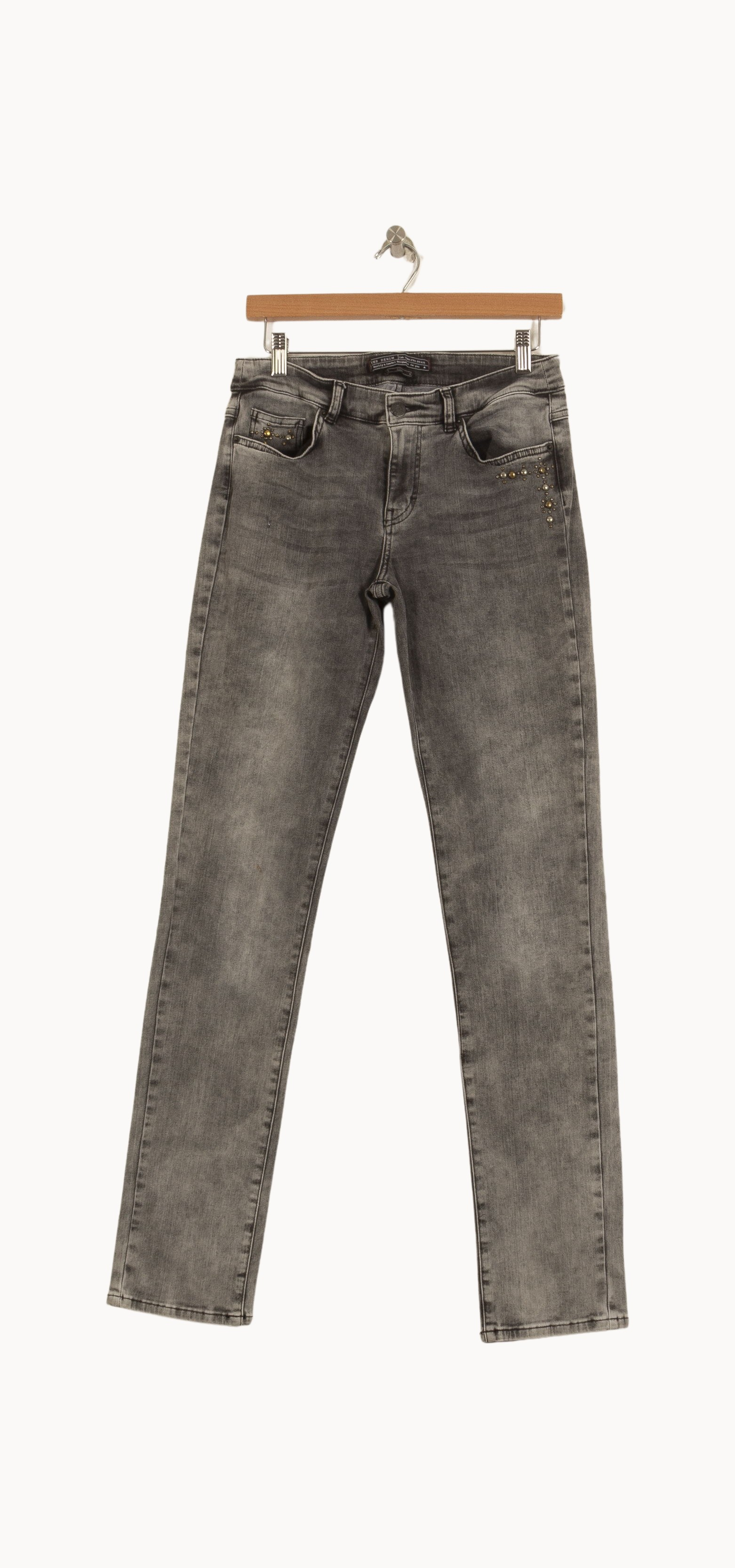 Jean gris IKKS femme, taille L/40, de la catégorie Pantalons & Jean, alliant modernité et élégance. Confectionné dans une toile denim grise, ce modèle se distingue par de subtils effets délavés et des détails de petits studs dorés apposés sur les poches avant, qui ajoutent une touche raffinée et contemporaine à l’ensemble. Idéal pour une journée citadine, il s’accorde parfaitement avec un haut casual ou une veste structurée pour un look à la fois confortable et tendance.