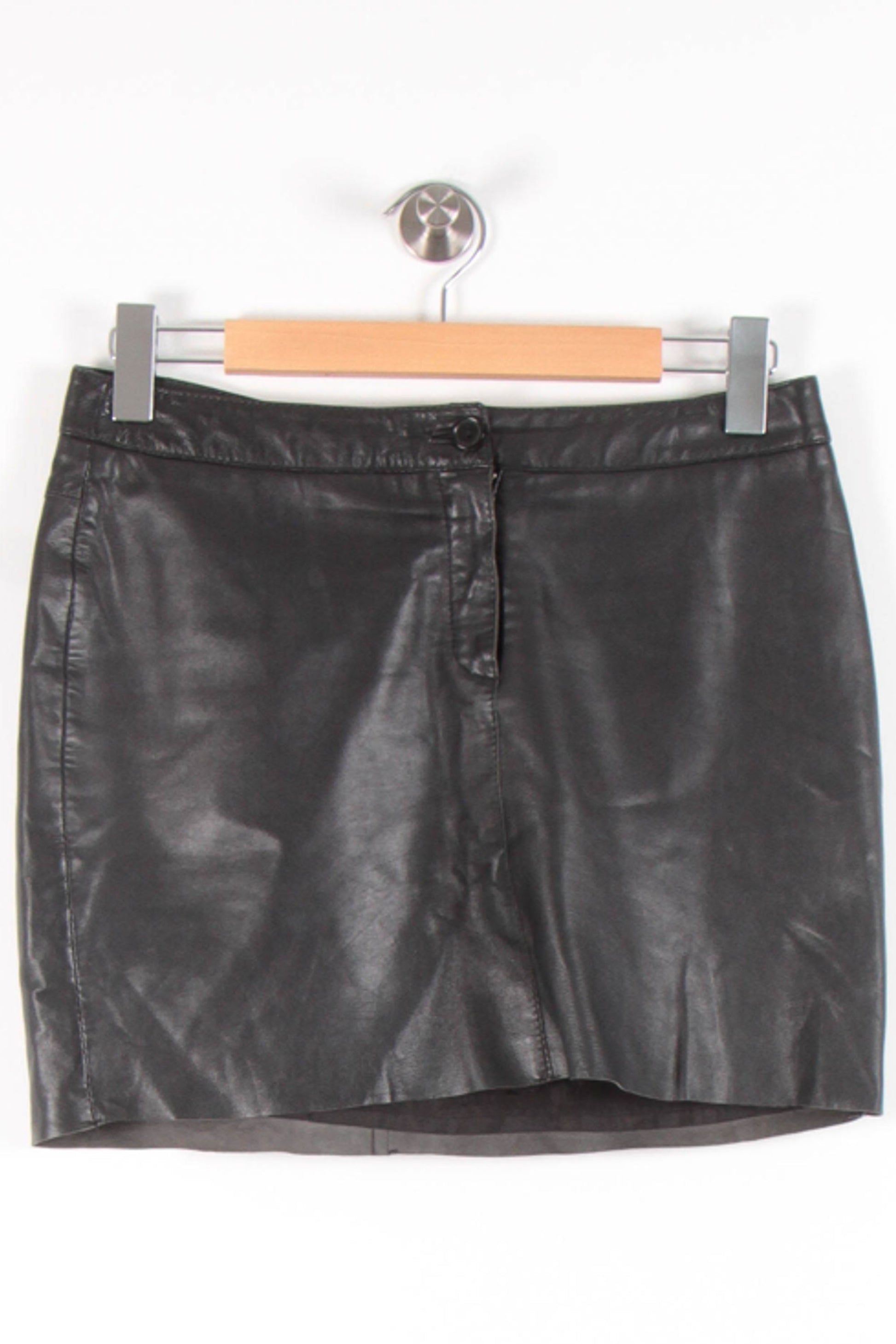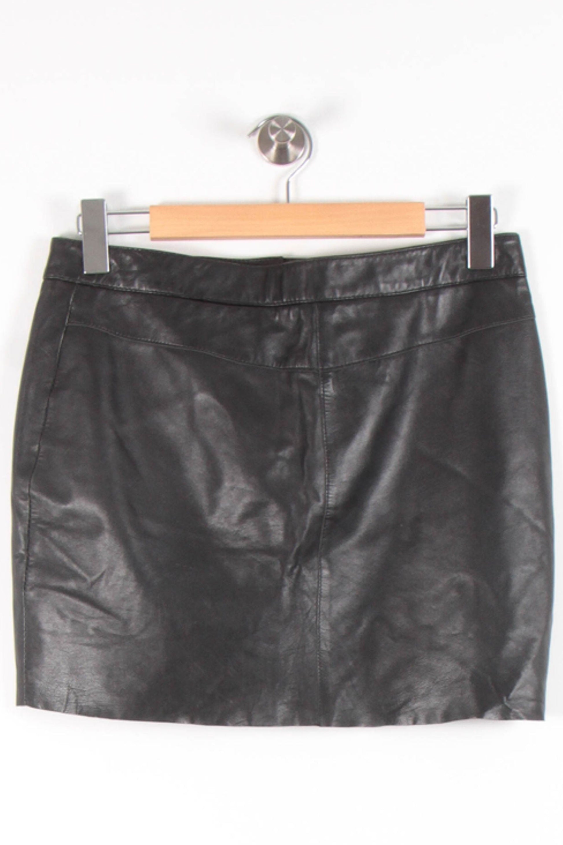 Jupe noire courte Sud express, taille M/38, élégante et polyvalente, idéale pour sublimer votre garde-robe. Sa matière effet cuir lisse lui confère un style contemporain et raffiné, tandis que la taille classique et la fermeture boutonnée apportent une touche de sobriété qui distingue ce modèle. Parfaite pour une soirée entre amis ou une sortie en ville, cette jupe saura rehausser toute tenue avec modernité.
