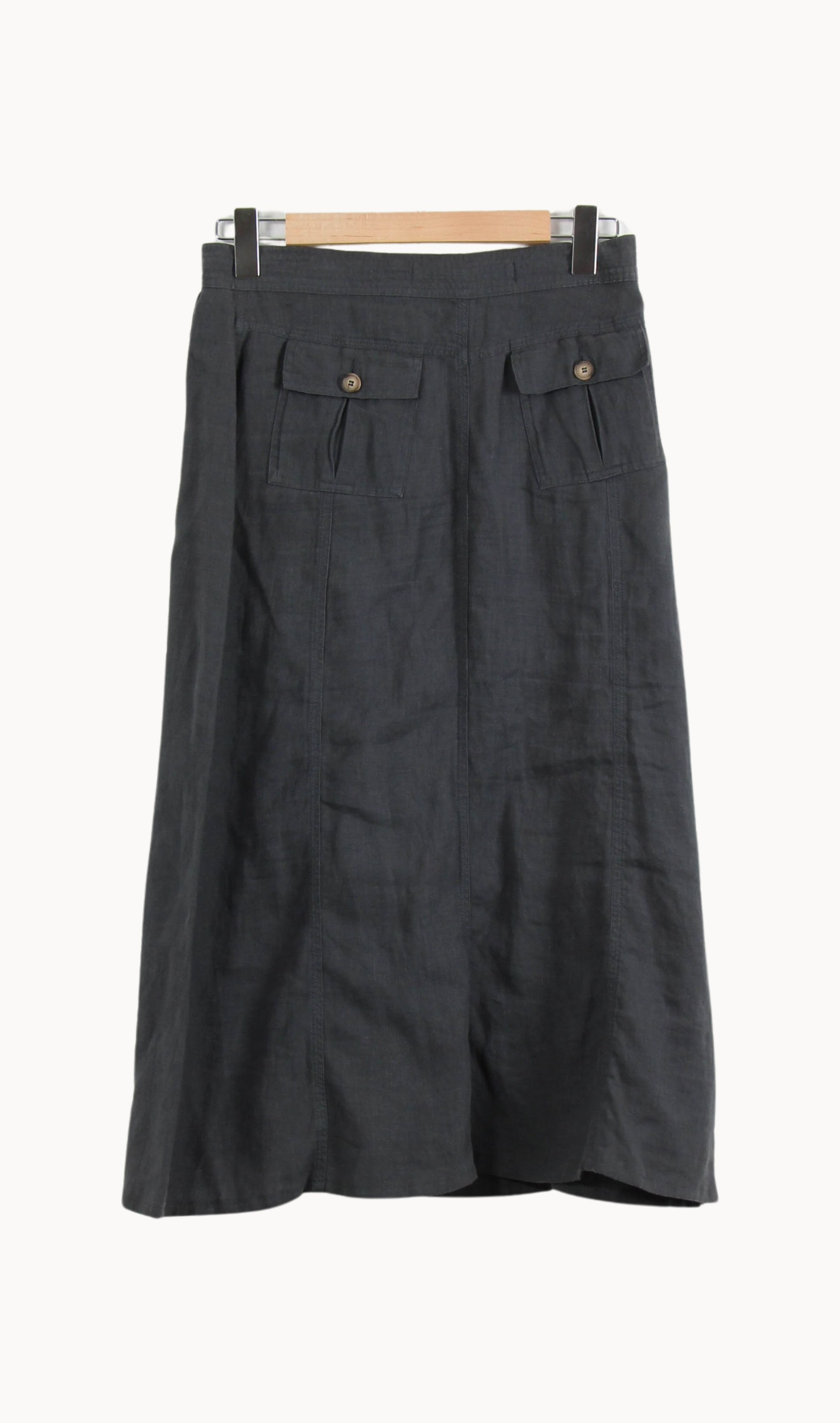 Jupe mi-longue verte Caroll, taille M/38, élégante et intemporelle pour sublimer votre garde-robe. Sa matière fluide et légère offre un tombé naturel, rehaussé de poches à rabat boutonnées sur le devant, lui donnant un caractère raffiné et distinctif. Idéale pour une journée de travail ou une sortie citadine, elle s’associe facilement à une blouse pour un look chic et confortable.