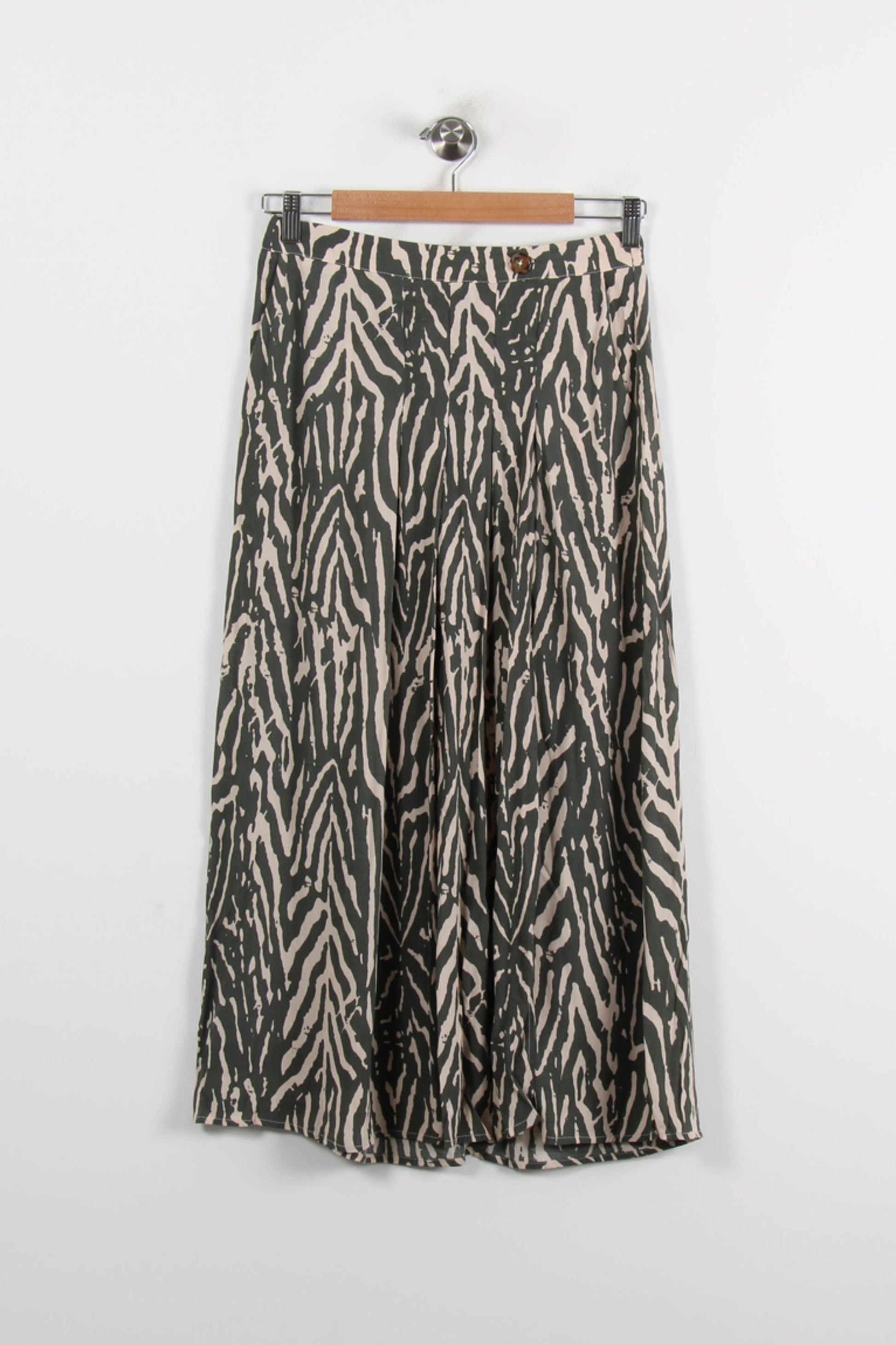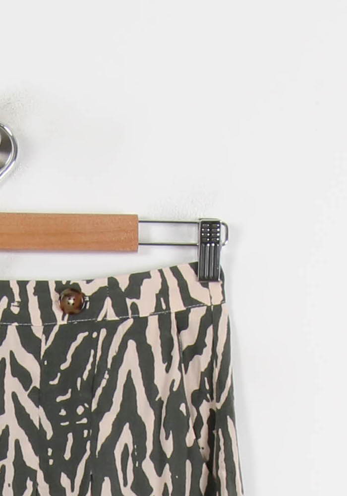 Jupe midi imprimé zébré vert, taille S/36, de la marque Caroll. Confectionnée dans une matière fluide, cette jupe se distingue par son imprimé graphique zébré et son bouton discret à la taille, offrant une touche d’originalité et d’élégance à la silhouette. Idéale pour une journée au bureau ou un déjeuner entre amis, elle accompagne parfaitement un chemisier blanc et des sandales.