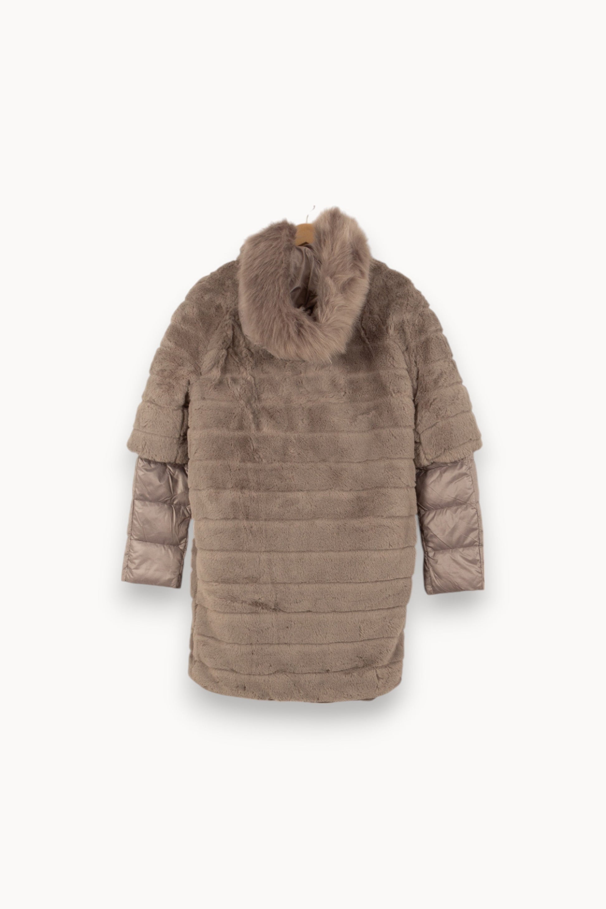 Manteau gris XXL/44 Marina Rinaldi : ce manteau élégant de la marque Marina Rinaldi séduit par sa couleur sobre et sa coupe enveloppante, idéale pour la saison hivernale. La pièce allie une matière effet fourrure douce au toucher et des manches contrastantes matelassées, apportant relief et sophistication à l'ensemble, pour un look moderne et raffiné. Parfait pour sublimer une tenue citadine lors d’une sortie en ville ou pour accompagner une robe lors d’un événement hivernal.
