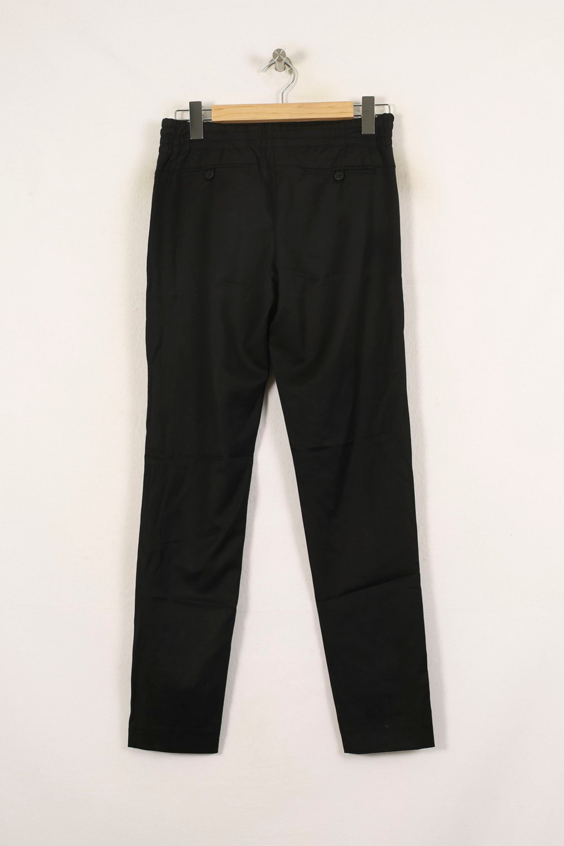Pantalon noir Zadig&Voltaire, taille S/36 – un modèle épuré au style contemporain signé par la marque. Confectionné dans une matière fluide et légère, il présente une taille élastiquée avec cordon de serrage, offrant confort et ajustement parfait tout en conservant une allure élégante. Idéal pour une journée de travail décontractée ou une sortie citadine, ce pantalon s’accorde facilement avec une chemise ou un pull simple.