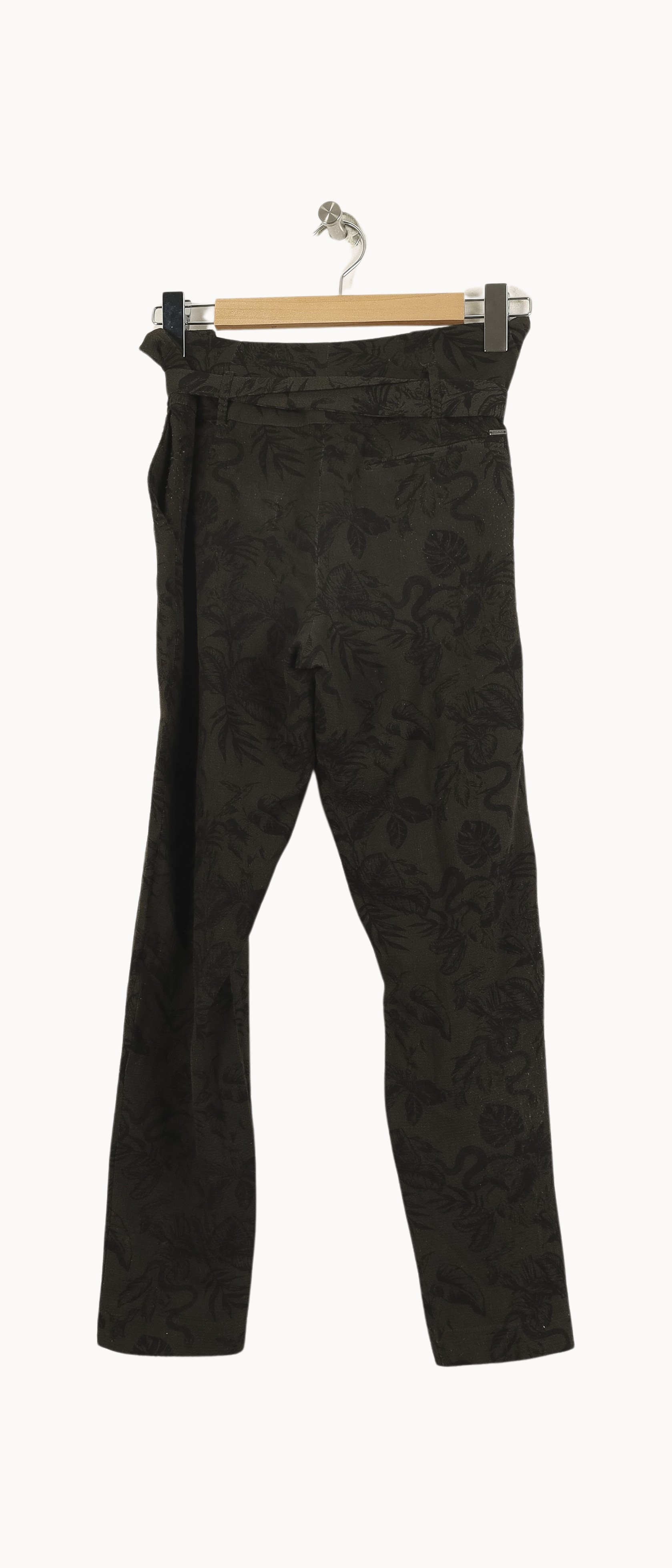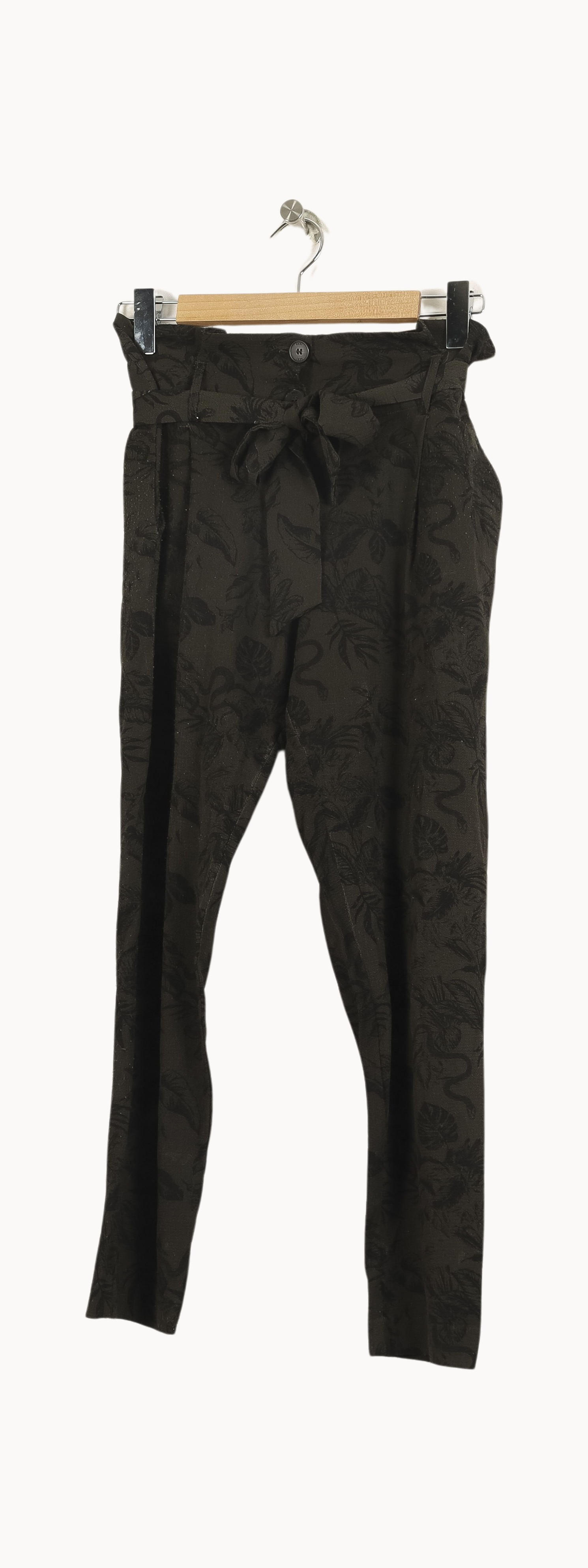 Pantalon à imprimé feuillage IKKS, taille S/36, vert – une pièce élégante signée IKKS à la coupe moderne. Confectionné dans une matière souple à motifs végétaux en relief et rehaussé d’une ceinture assortie à nouer, ce pantalon se distingue par ses finitions raffinées et originales. Idéal pour une journée au bureau ou une sortie décontractée, il apportera une touche chic à votre look.
