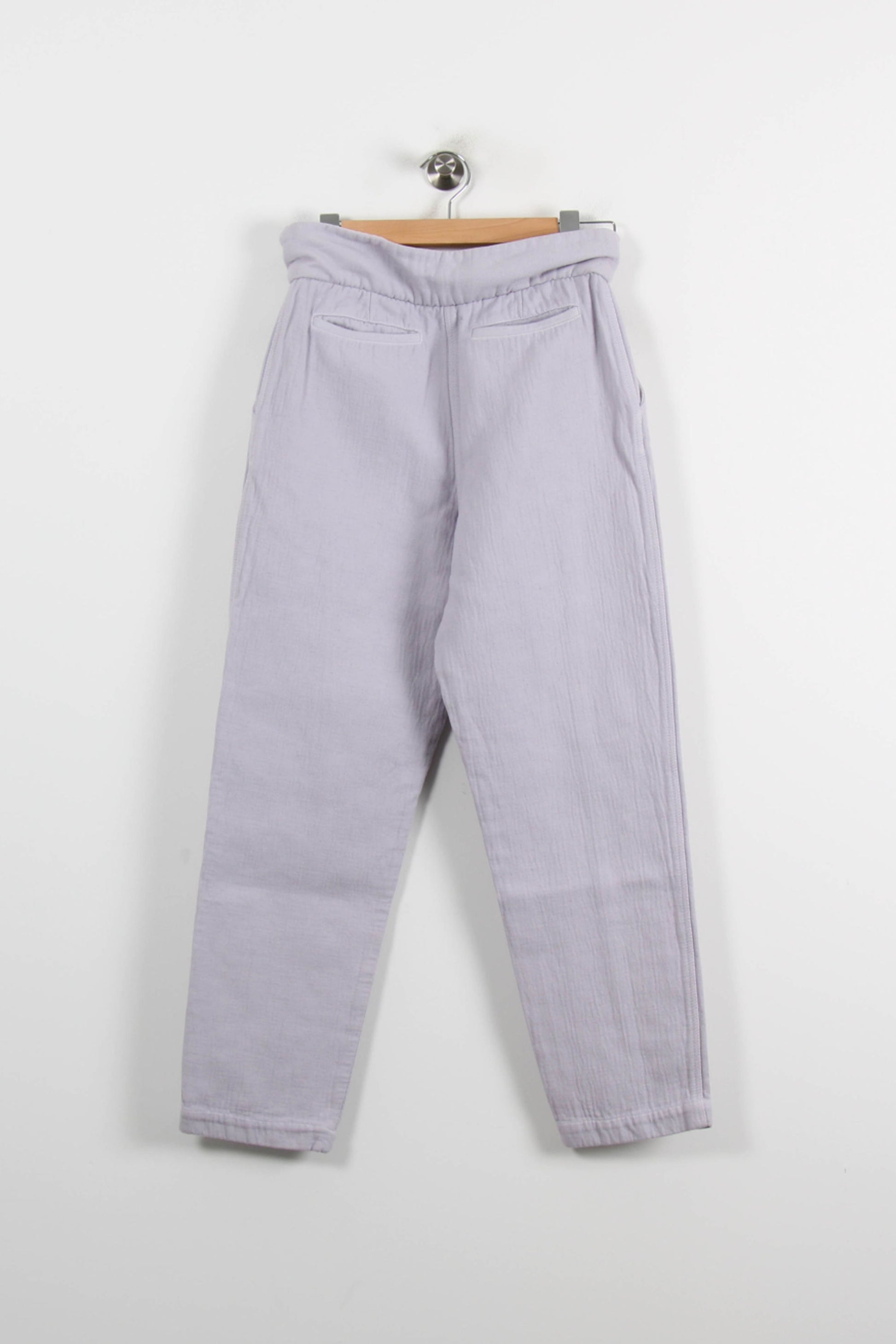 Pantalon taille S/36 de la marque IRO, couleur violet, à coupe moderne et ceinture assortie. Confectionné dans une matière à l’aspect légèrement texturé, ce pantalon se distingue par sa taille haute et ses bandes à nouer, qui lui apportent une touche contemporaine et élégante. Idéal pour une journée professionnelle chic ou une sortie en ville où style et confort sont de mise.