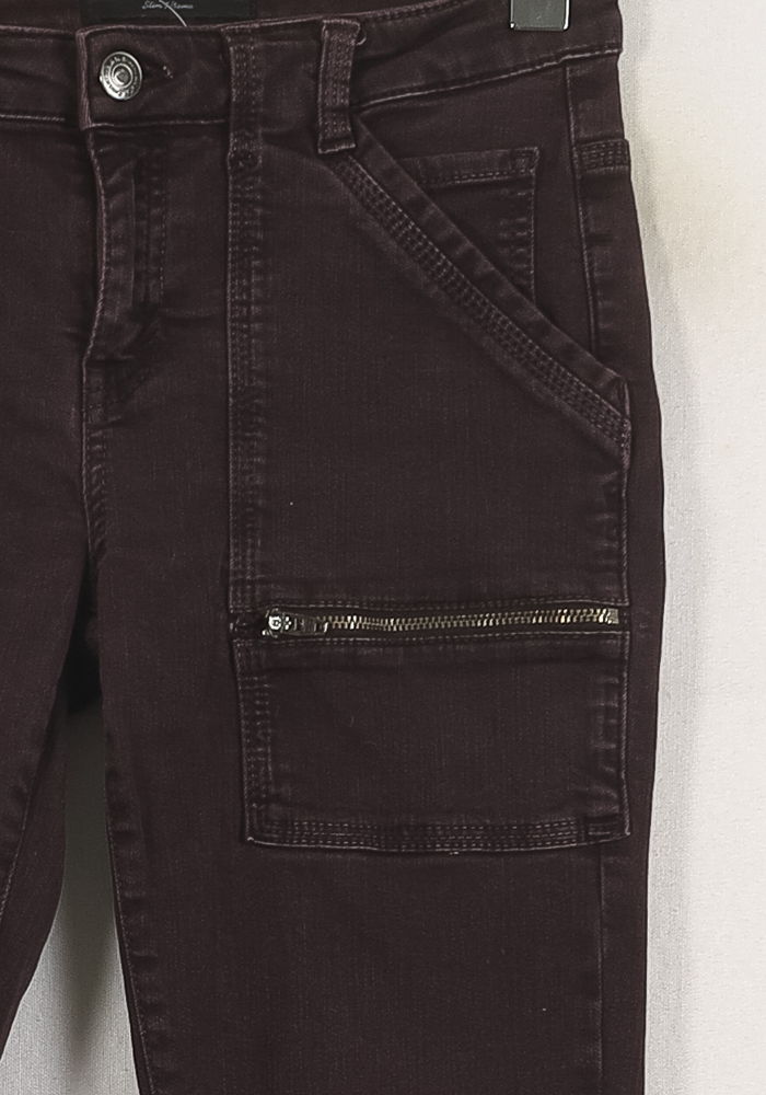 Pantalon violet IKKS, taille XS/34, coupe ajustée, parfait pour une allure moderne et élégante. Confectionné dans une matière au toucher doux, ce pantalon se distingue par ses poches à zip sur le devant et ses surpiqûres apparentes, qui lui donnent un style urbain sophistiqué. Idéal pour un look casual chic lors d’une journée en ville ou pour un rendez-vous décontracté.