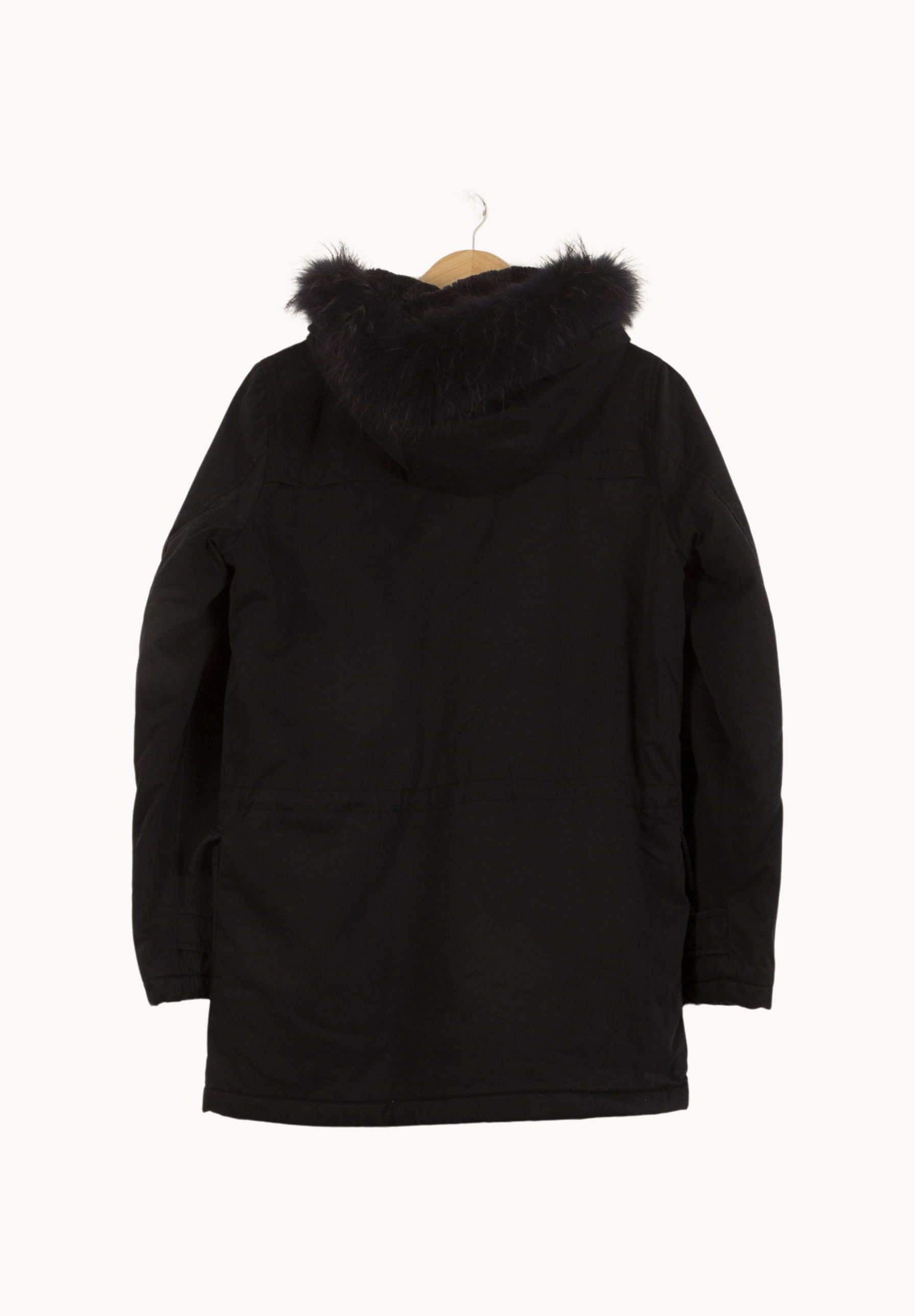 Manteau à capuche avec fausse fourrure noire, taille L/40, signé IKKS, élégant et fonctionnel pour affronter la saison froide. Confectionné dans une matière résistante et doublé pour plus de confort, il se distingue par sa capuche ornée de fausse fourrure et ses détails pratiques comme les poches à rabat et les attaches métalliques raffinées, apportant une touche d’originalité. Parfait pour les sorties urbaines ou vos balades hivernales, ce manteau allie style intemporel et protection optimale.