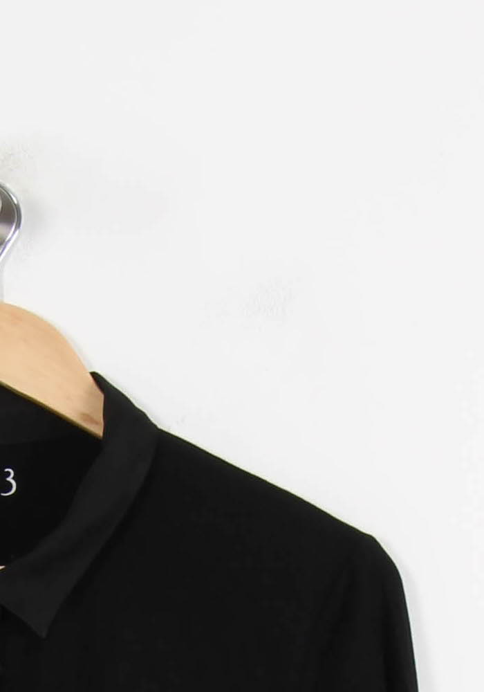 Top noir à manches longues Maison 123, taille XXXL/46, au col classique et à patte de boutonnage élégante. Confectionné dans une matière fluide et confortable, ce haut se distingue par ses boutons délicats et sa coupe intemporelle, apportant une touche de raffinement à votre garde-robe. Parfait pour une journée au bureau ou une sortie décontractée, il s'adapte facilement à toutes les occasions.
