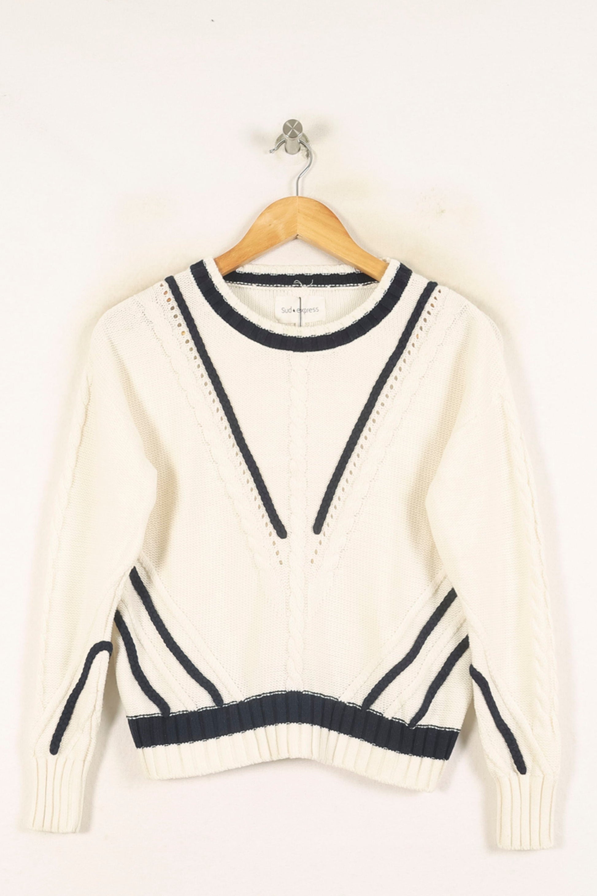 Pull Blanc et Noir - Taille S/36 de la marque Sud express