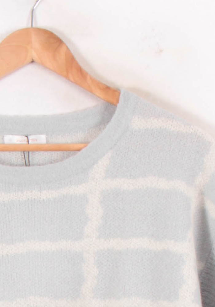 Pull Grace & Mila à motif carreaux bleu, taille L/40, alliant élégance et confort pour un look moderne et raffiné. Confectionné dans une maille douce, ce pull se distingue par son motif à grands carreaux blancs, apportant une touche graphique subtile et contemporaine. Idéal pour une journée de travail décontractée ou un brunch entre amis, il s’associe parfaitement à un jean ou une jupe pour une allure chic sans effort.