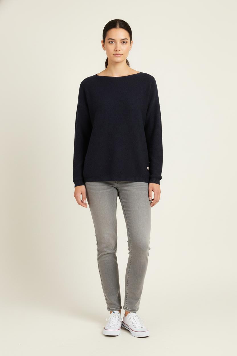 Pull bleu Sud Express, taille S/36, au design sobre et élégant, idéal pour un look quotidien raffiné. Confectionné dans une maille fine à la texture douce, il présente une encolure légèrement bateau et des finitions soignées sur les poignets et le bas pour une allure harmonieuse. Parfait pour accompagner un pantalon chic au bureau ou une jupe lors d'une sortie décontractée entre amis.