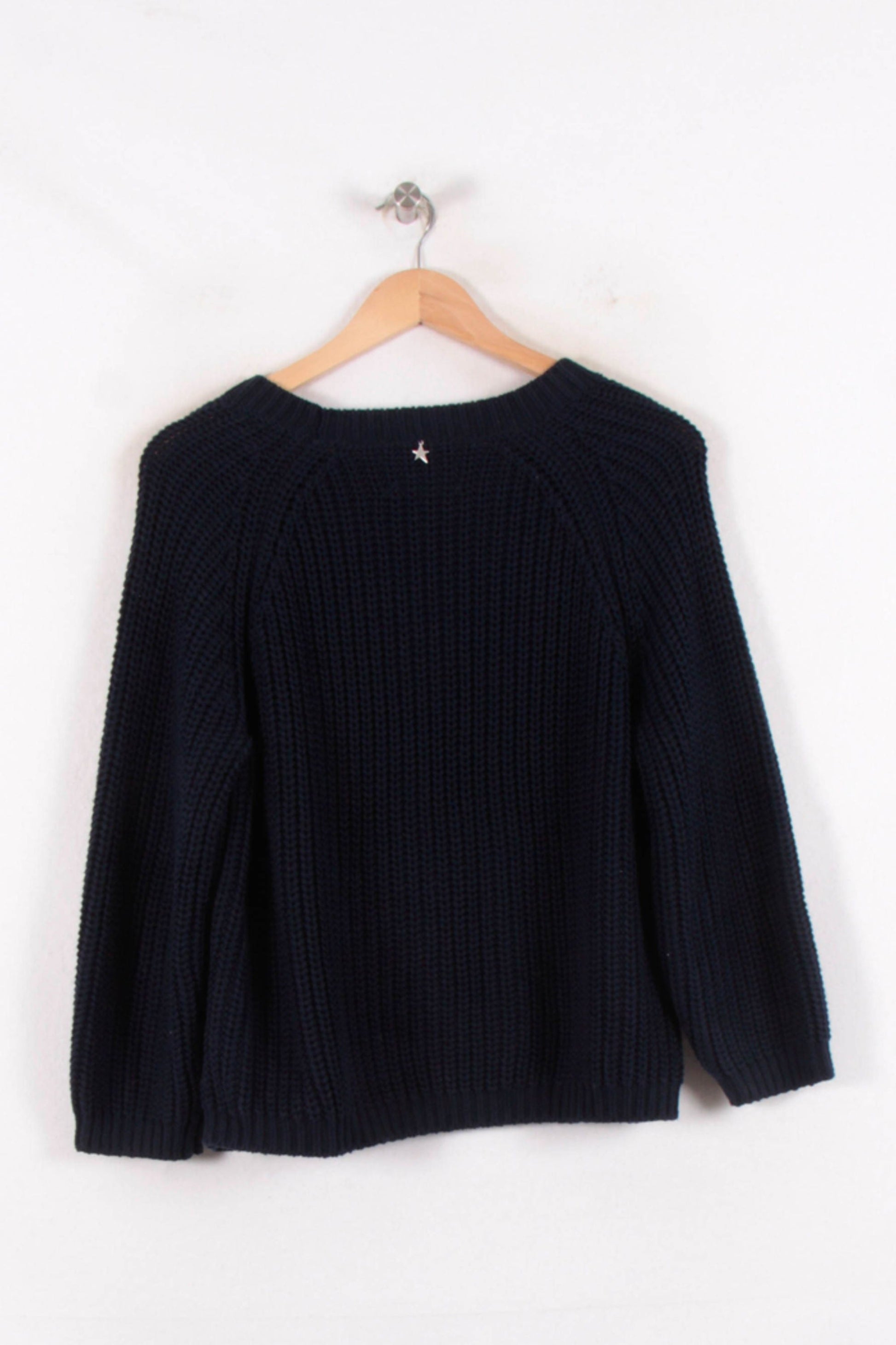 Pull col rond bleu marine, taille S/36, de la marque Sud express, parfait pour un style décontracté et élégant. Confectionné dans une maille épaisse à larges côtes, ce pull présente une coupe droite et des finitions côtelées au col, aux poignets et à la base, lui conférant une allure intemporelle et confortable. Idéal pour une journée de détente en ville ou une soirée cocooning à la maison.