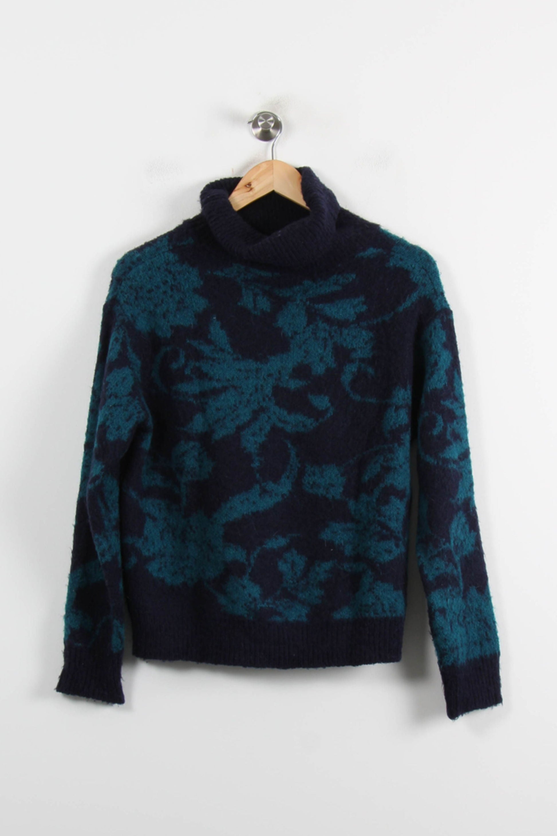 Pull Col Roulé Bleu Marine et Vert - Taille XS/34