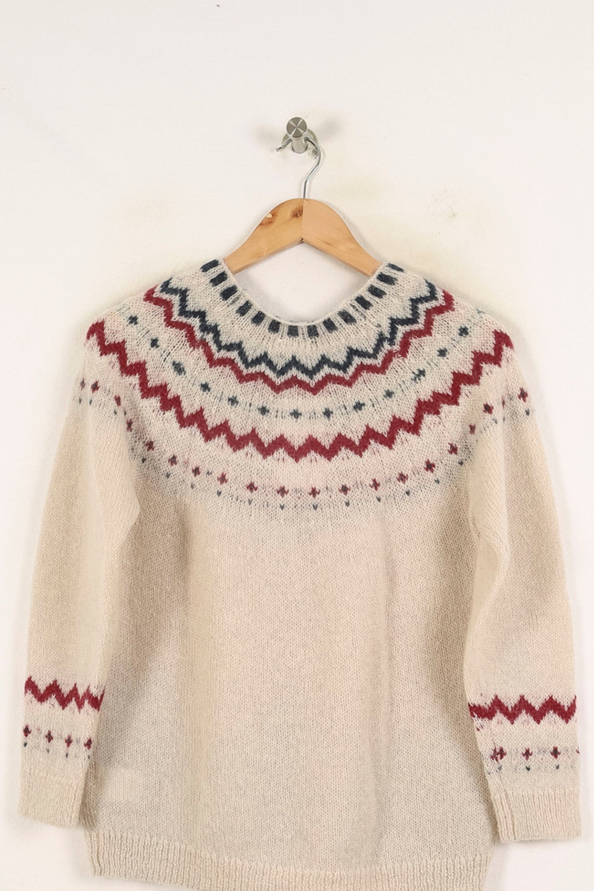 Pull Écru à Motifs Rouges et Bleus - Taille M/38