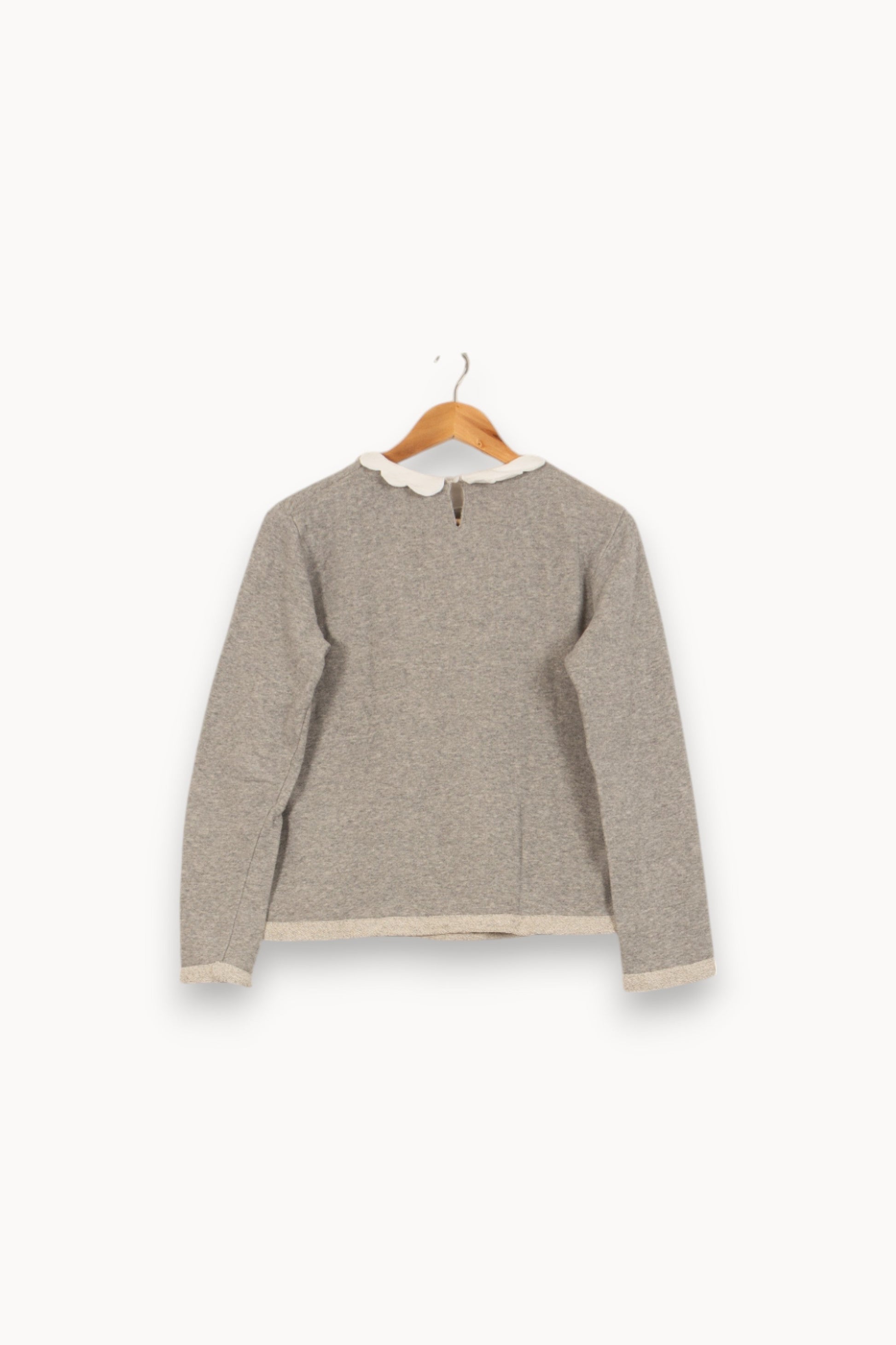 Pull gris à col Claudine blanc, taille S/36, signé Karl Marc John : un incontournable de la marque à la coupe sobre et élégante. La matière douce et la finition délicate sont rehaussées par un col Claudine à bord festonné qui confère une touche unique et raffinée à ce pull classique. Parfait pour une journée au bureau ou un déjeuner entre amis, il sublimera vos tenues avec discrétion et féminité.