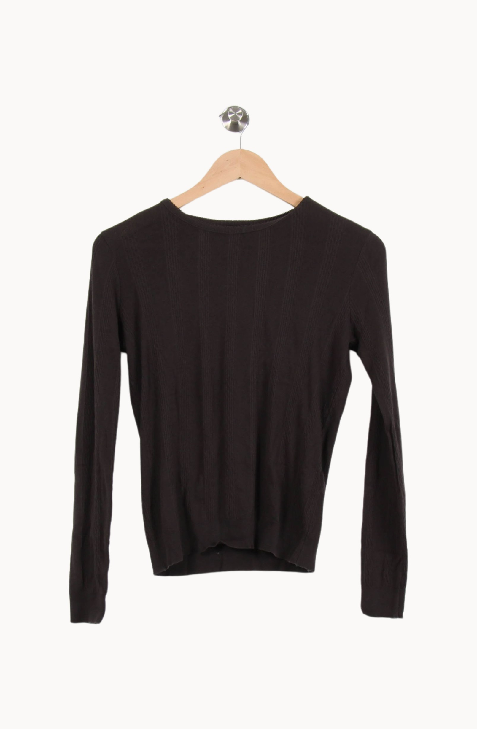 Top en maille marron A.P.C., taille M/38, au design épuré et élégant. Confectionné dans une maille fine avec un travail de côtes discrètes, ce haut se distingue par sa coupe ajustée et son encolure ronde, mettant en valeur un style sobre et intemporel. Idéal pour un rendez-vous professionnel ou une sortie élégante en soirée, il apporte une touche raffinée à toute tenue.