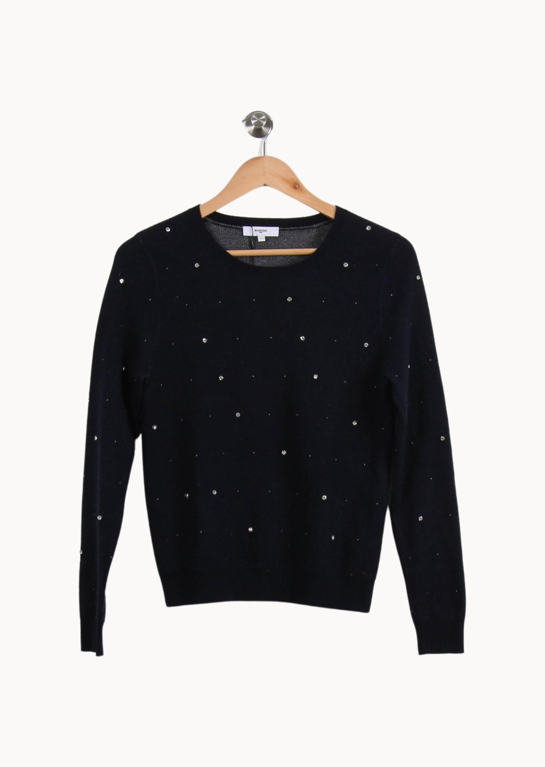 Pull Suncoo noir à manches longues, taille S/36, signé par la marque Suncoo. Confectionné dans une maille douce, ce pull se distingue par ses petits ornements métalliques délicatement brodés, apportant une touche de raffinement subtile à une silhouette classique. Idéal pour une soirée élégante ou un dîner raffiné, il s’associe parfaitement avec un pantalon chic ou une jupe.