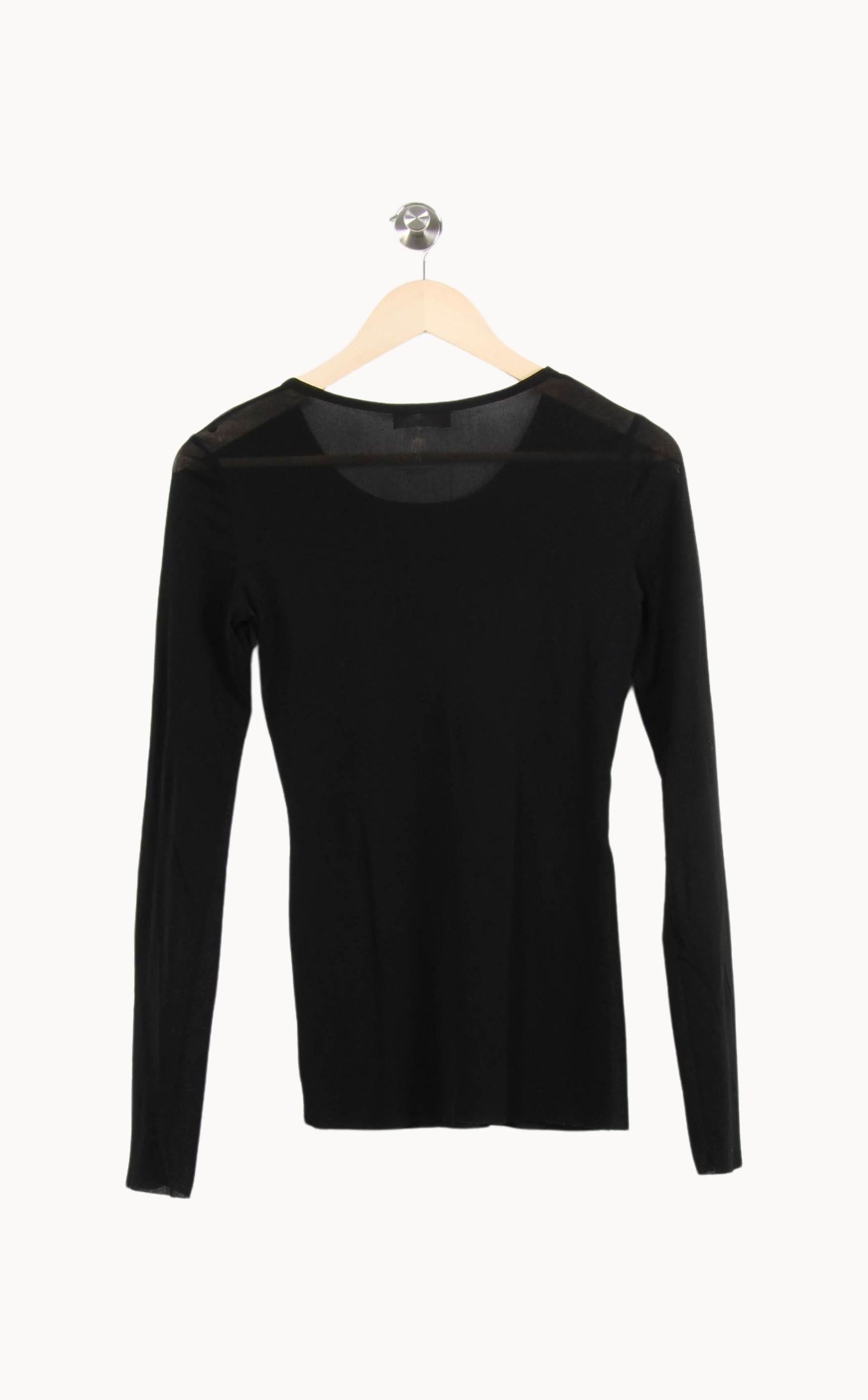 Top noir à manches longues One Step, taille S/36 – un indispensable alliant élégance et simplicité. Confectionné dans une matière fluide et légère, ce top se distingue par sa coupe près du corps et son col rond, pour une silhouette moderne et féminine. Idéal à porter au bureau avec un pantalon habillé ou lors d’une soirée entre amis pour une allure chic et épurée.