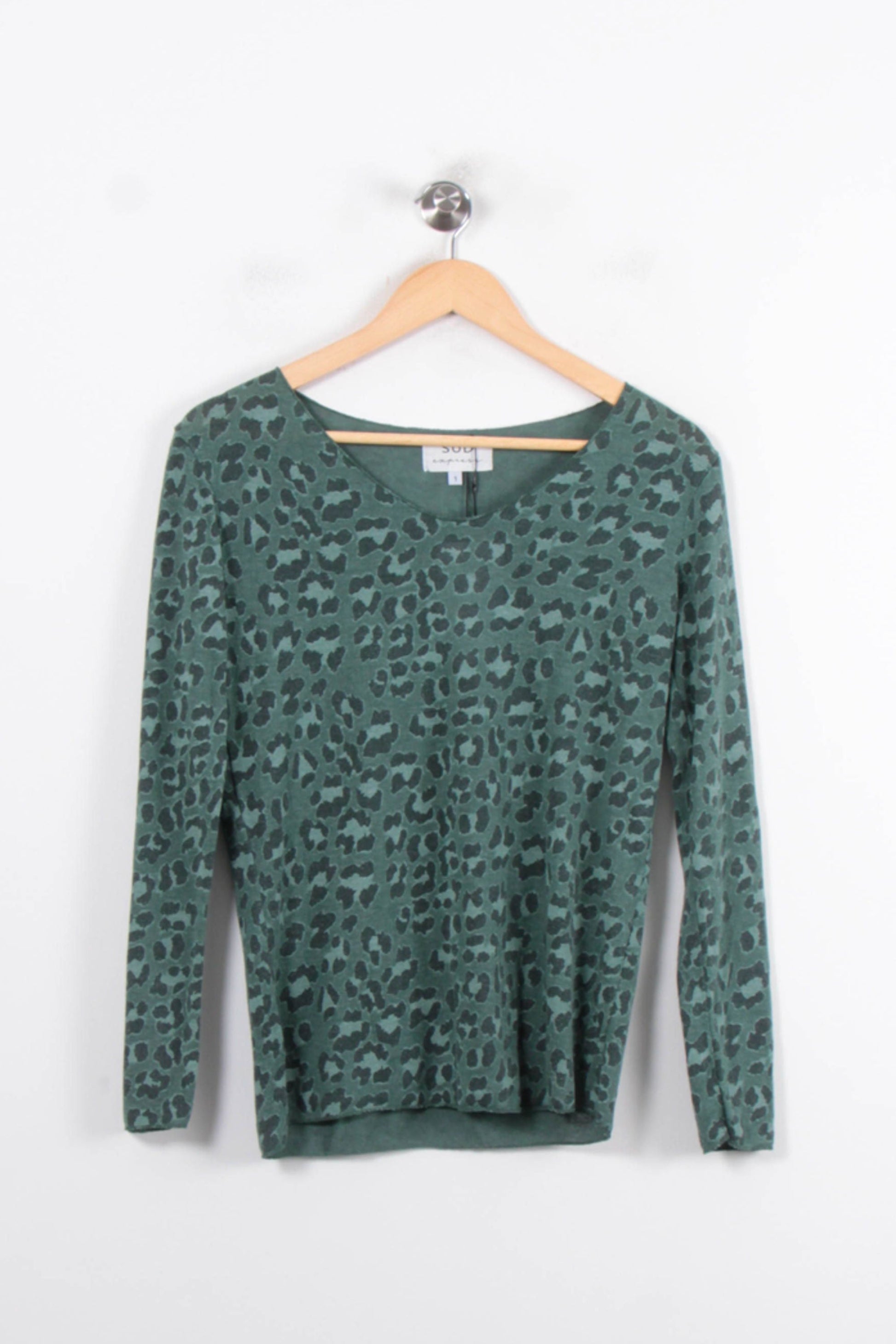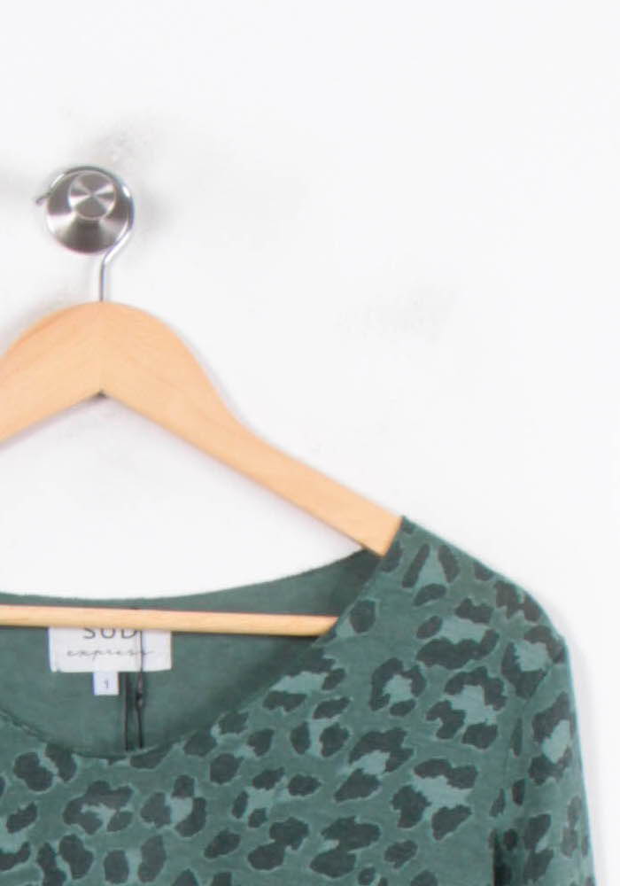 Pull imprimé léopard vert Sud express, taille S/36, parfait pour une allure tendance et décontractée. Confectionné dans une matière douce et fluide, ce modèle se distingue par son motif léopard original sur fond vert, ajoutant une touche de caractère à votre garde-robe. Idéal à porter lors d’une sortie entre amis ou pour apporter une note audacieuse à votre look de bureau.