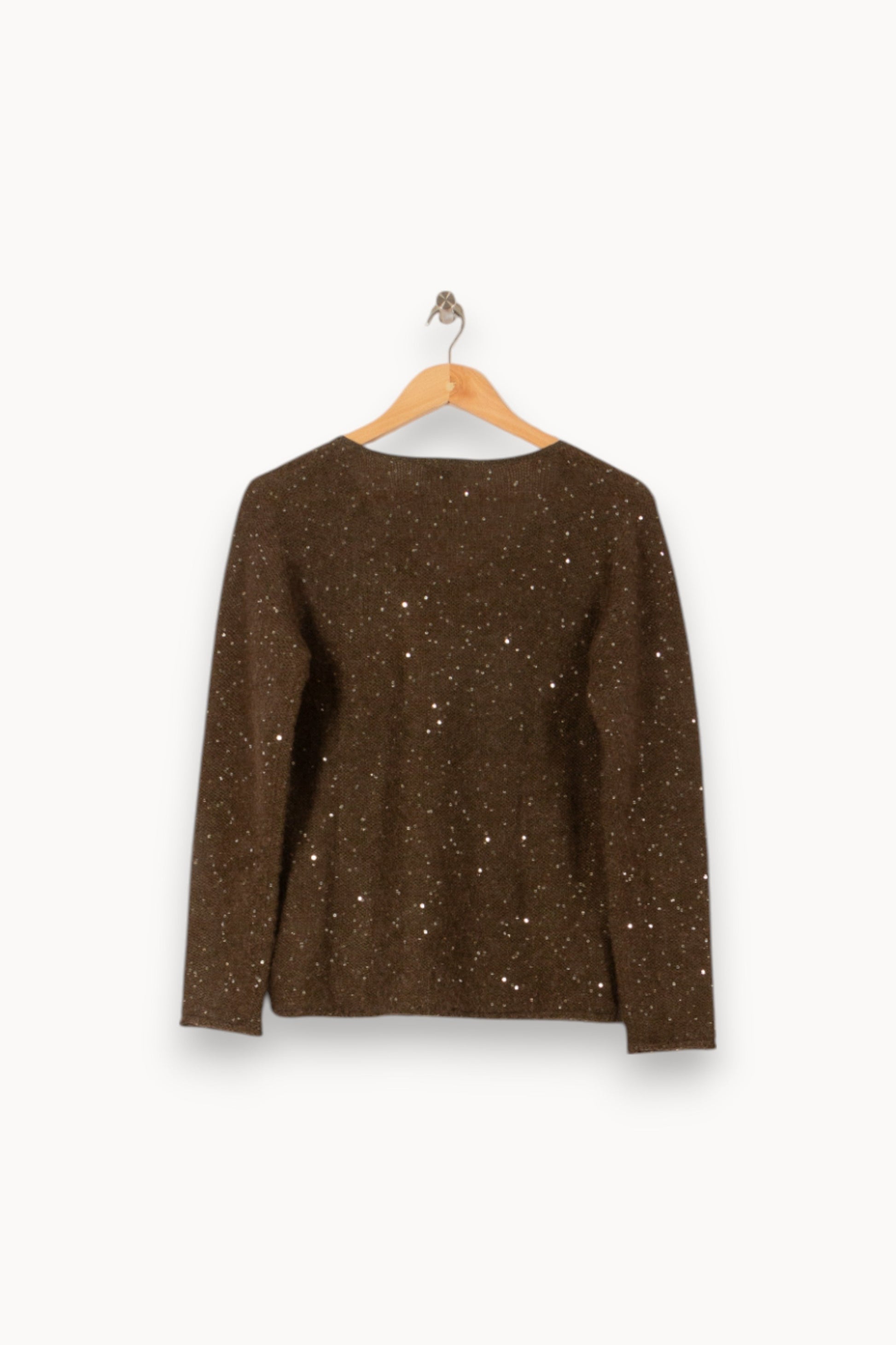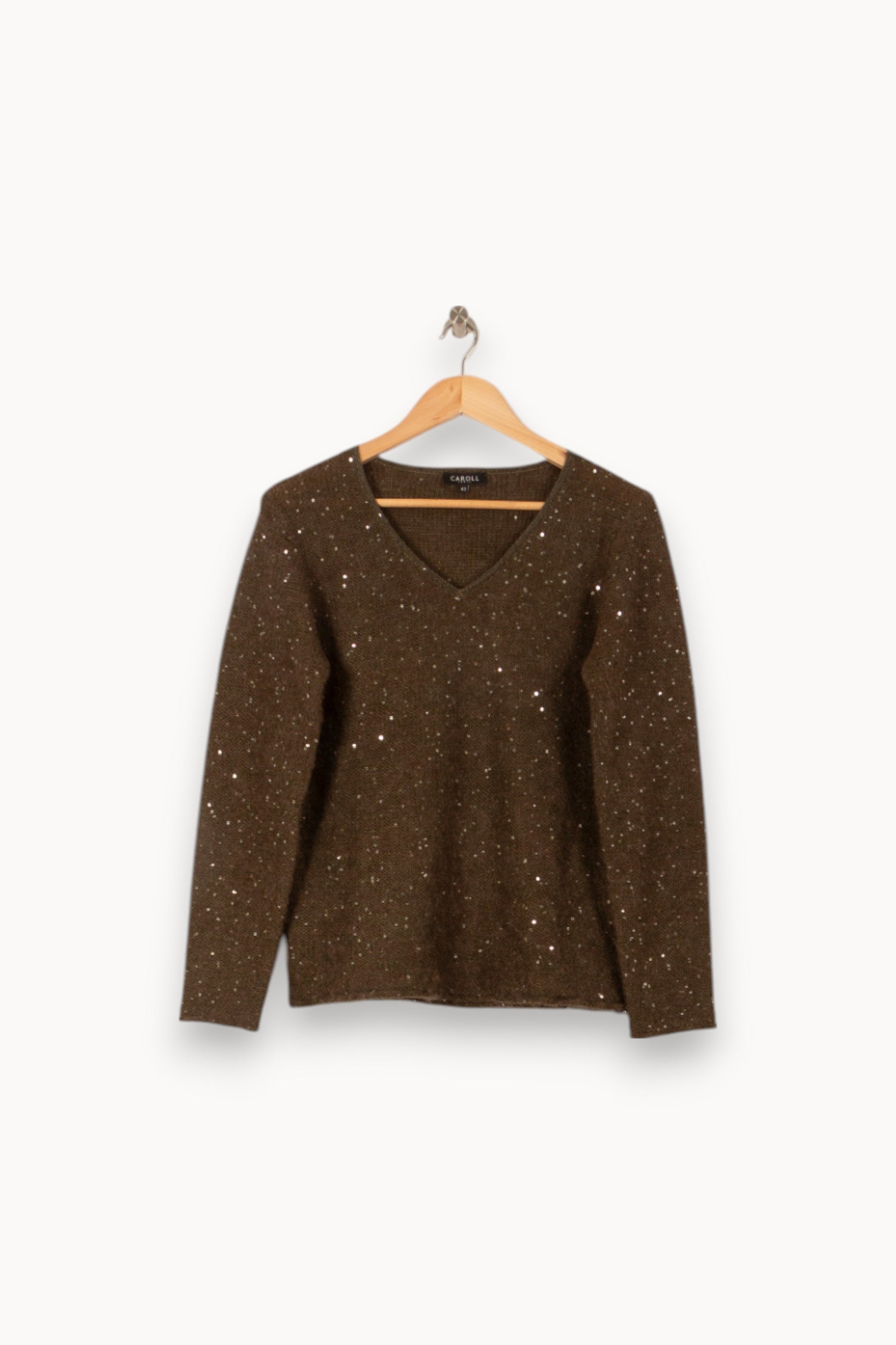Pull vert à sequins Caroll, taille XL/42 – un modèle chic de la marque reconnu pour son élégance, parfait dans la catégorie Pulls & Cardigans. Confectionné dans une maille agrémentée de sequins discrets, ce pull à col V séduit par ses finitions lumineuses qui lui apportent une touche de modernité et d’originalité. Idéal pour illuminer une tenue lors d’un dîner entre amis ou d’une soirée hivernale.