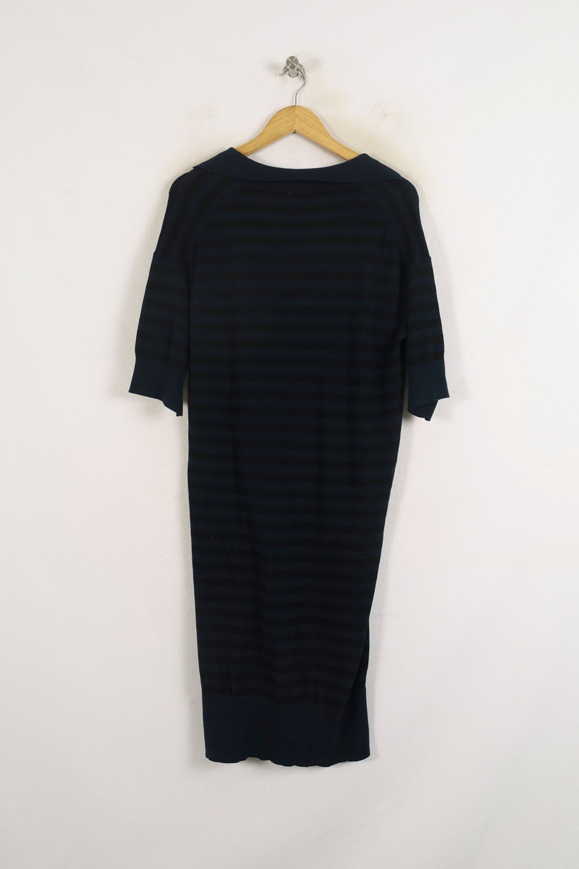 Robe à rayures bleu marine Ines de la Fressange Paris, taille S/36, élégante et décontractée avec une coupe droite et un col en V. Confectionnée dans une matière fluide et douce, cette robe se distingue par ses rayures discrètes et son tombé naturel, offrant un confort optimal et une allure sophistiquée. Idéale pour une sortie en ville ou un déjeuner chic, elle assure une silhouette raffinée en toute simplicité.