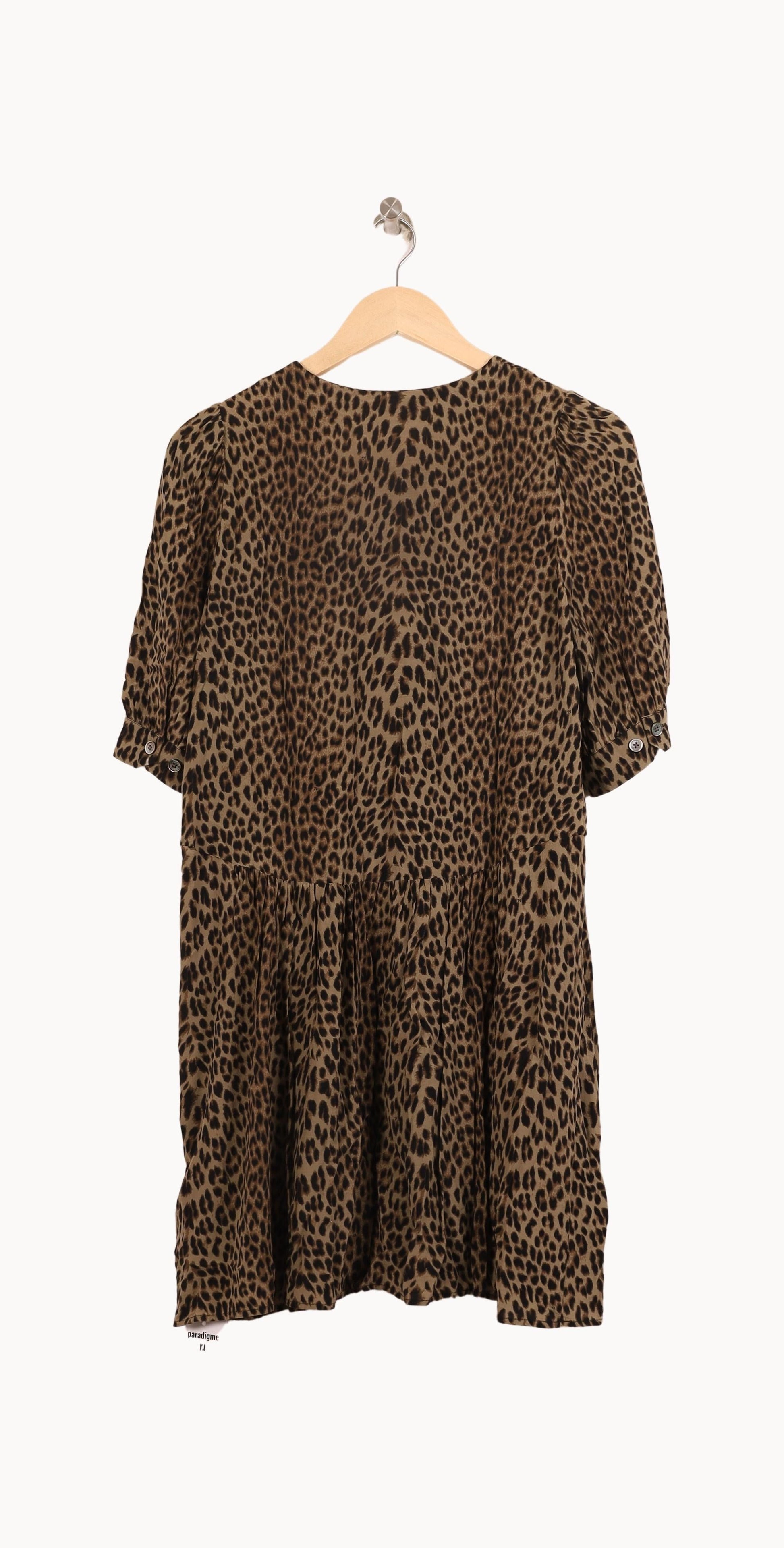 Robe courte imprimé léopard Zadig&Voltaire, taille XS/34, couleur marron. Confectionnée dans une matière fluide et légère, cette robe séduit par son imprimé animalier audacieux et sa patte de boutonnage sur le devant, apportant caractère et originalité à la pièce. Parfaite pour une sortie en ville ou un déjeuner chic entre amis.