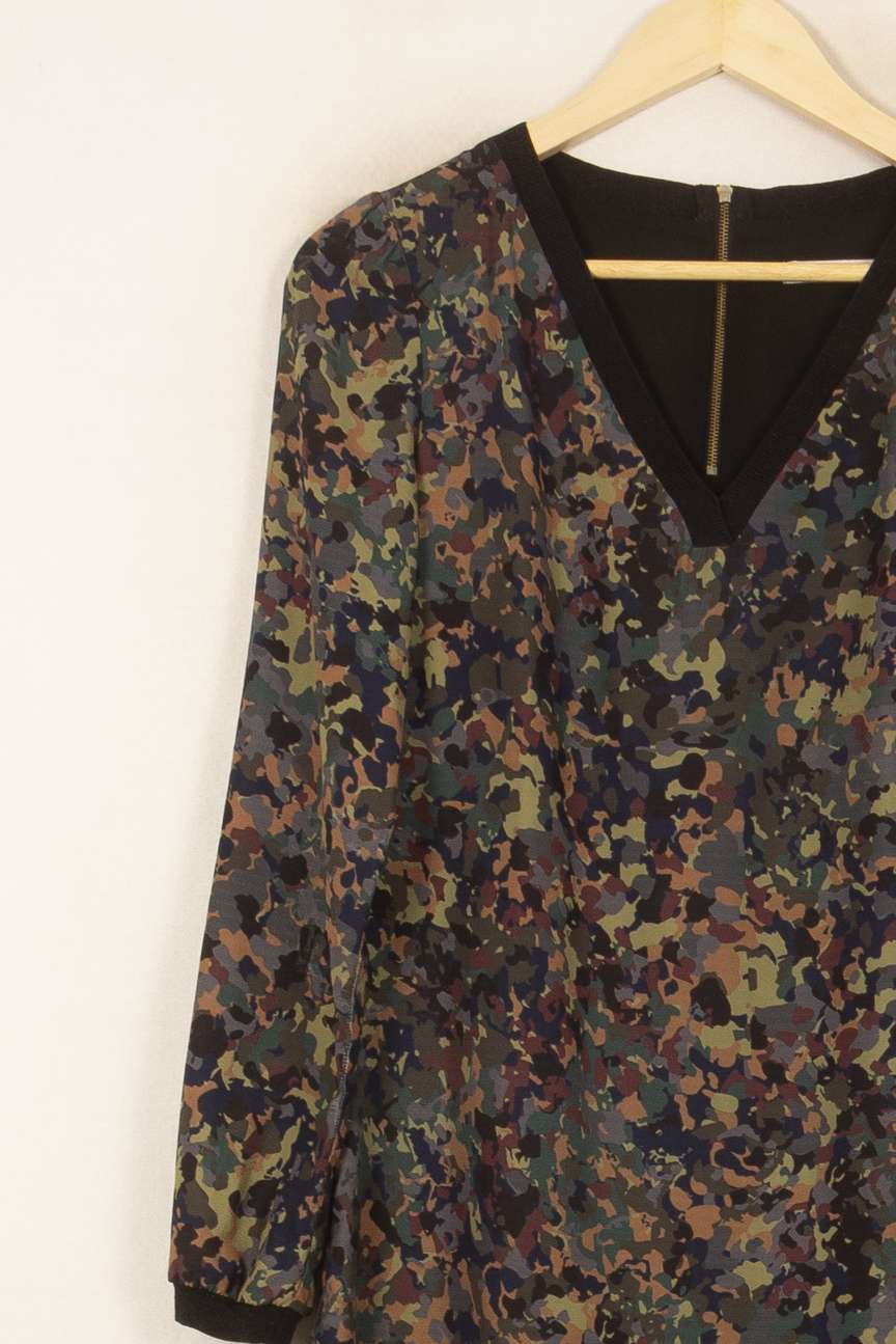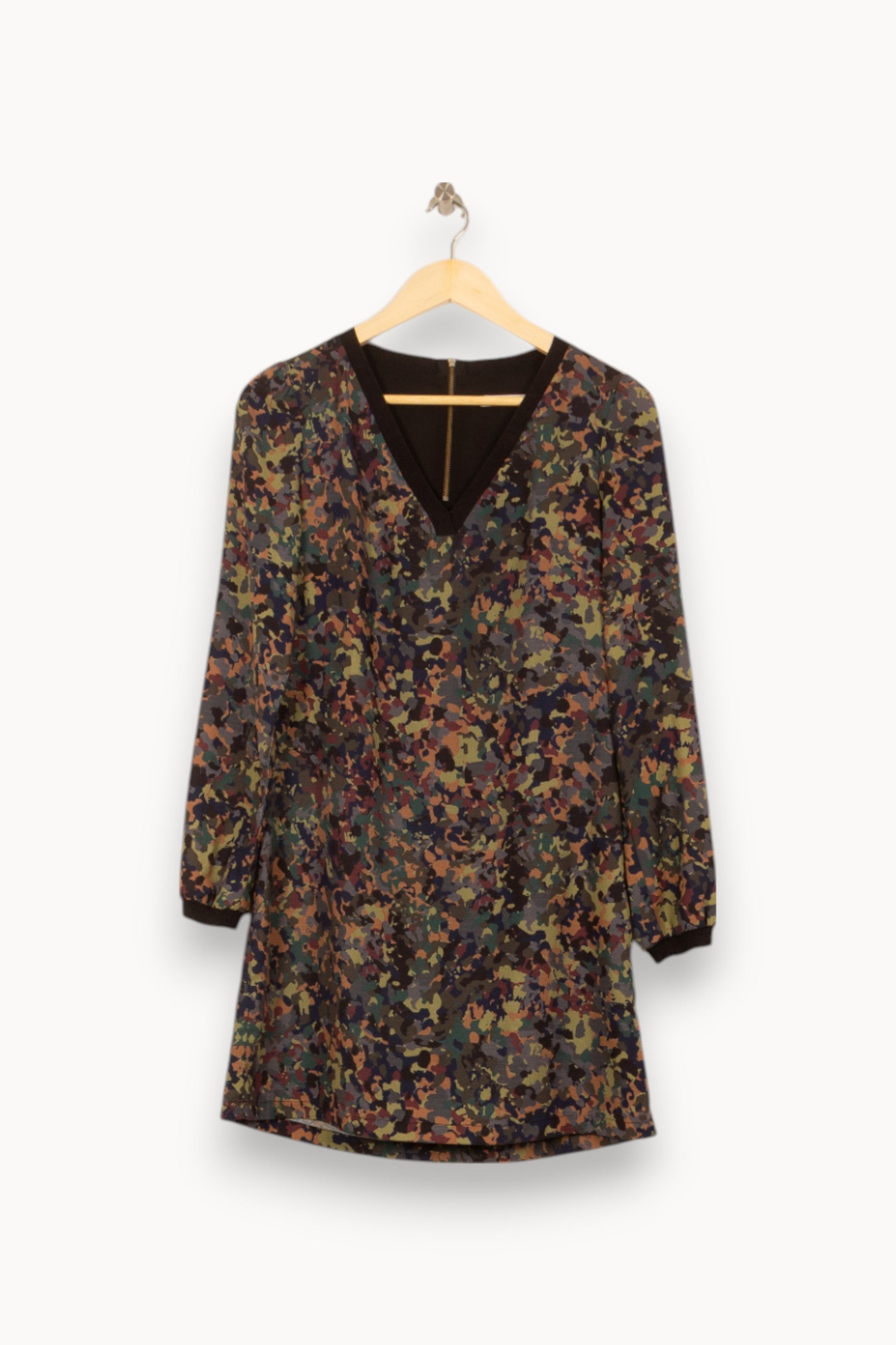 Robe Sessùn verte imprimée, taille S/36 – une pièce au charme graphique signée par la marque reconnue pour son style moderne et féminin. Confectionnée dans une matière fluide à motifs abstraits multicolores, cette robe se distingue par son col en V souligné d’un liseré foncé et ses manches longues à poignets contrastés, apportant originalité et élégance à l’ensemble. Parfaite pour une sortie entre amis ou un dîner, elle allie aisance et raffinement pour vos occasions casual chic.