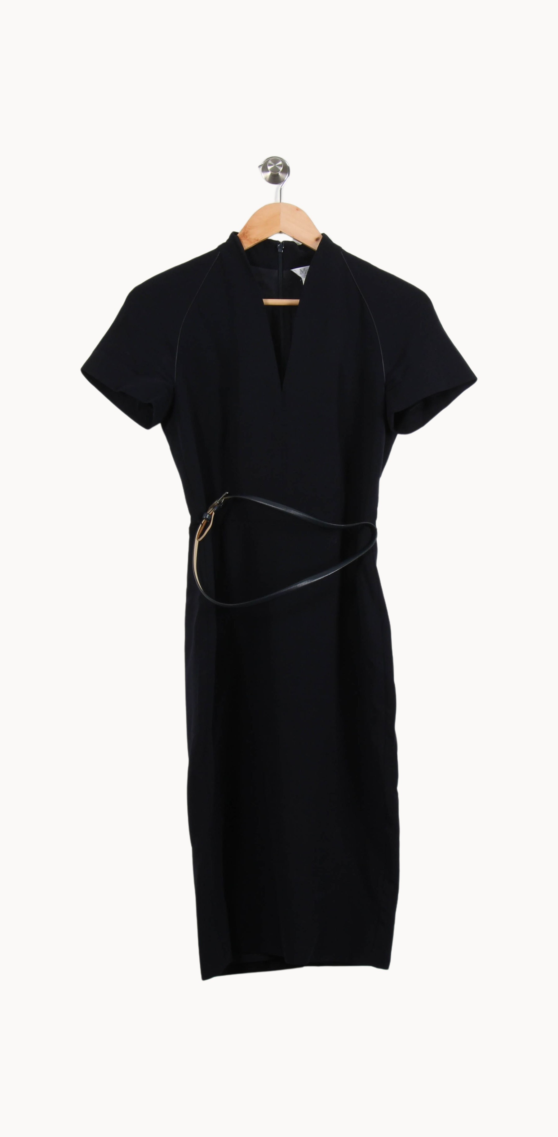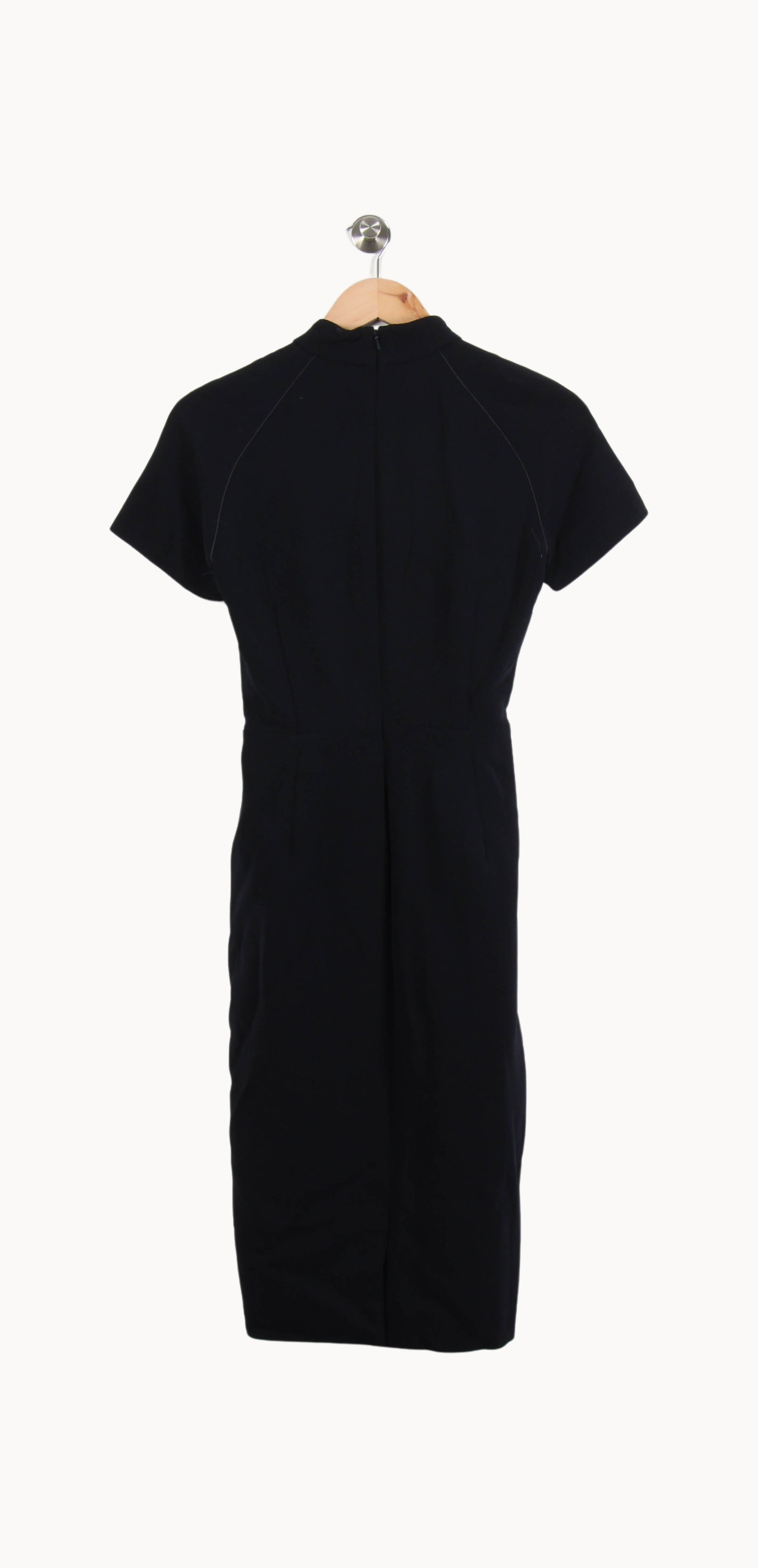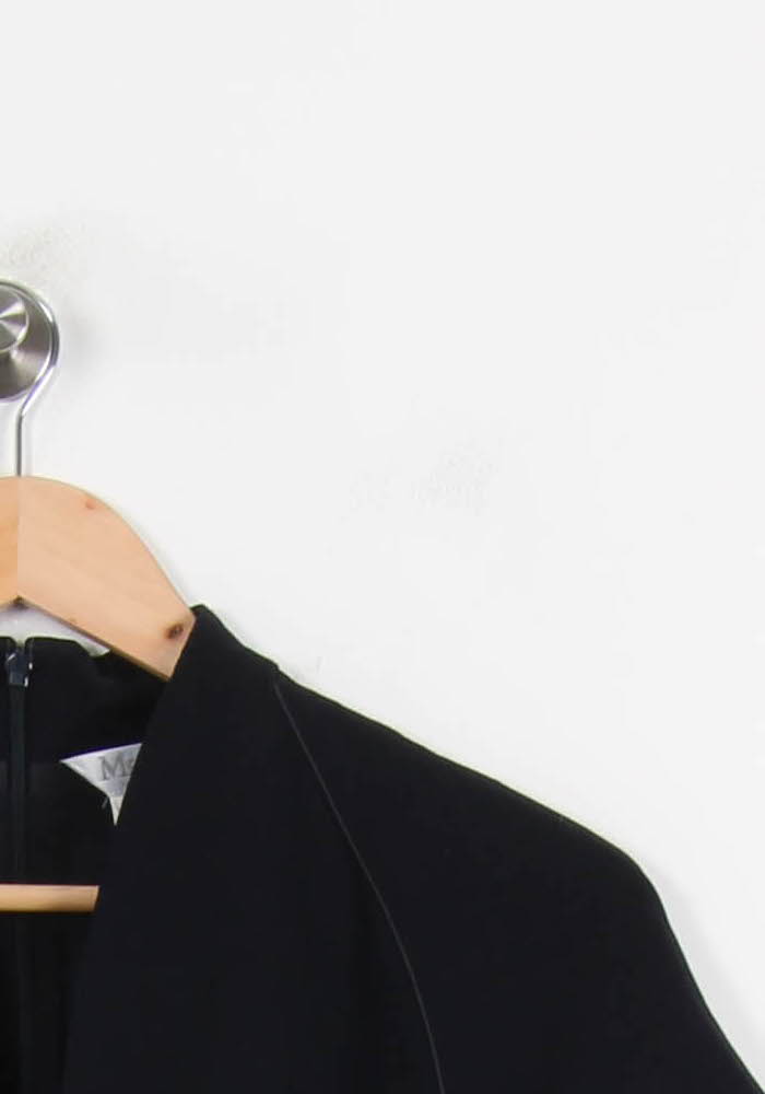 Robe bleu marine Max Mara, taille M/38, coupe droite avec ceinture fine à boucle, manches courtes et encolure en V. Confectionnée dans une matière fluide et élégante, cette robe se distingue par sa sobriété raffinée et son détail de ceinture qui sublime la silhouette avec sophistication. Idéale pour une réunion professionnelle ou un événement élégant en soirée.