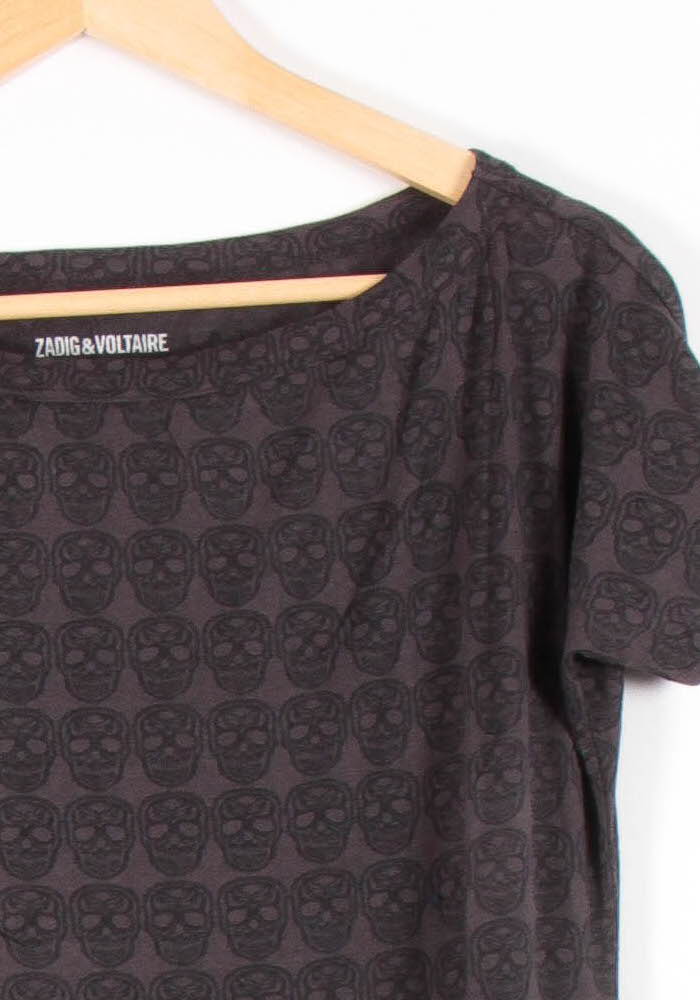 Robe noire Zadig&Voltaire, taille XS/34, coupe droite à manches courtes, élégante et moderne. En jersey souple, elle se distingue par son motif discret en all-over qui apporte une touche contemporaine et unique à la pièce. Idéale pour une soirée décontractée ou un afterwork chic.