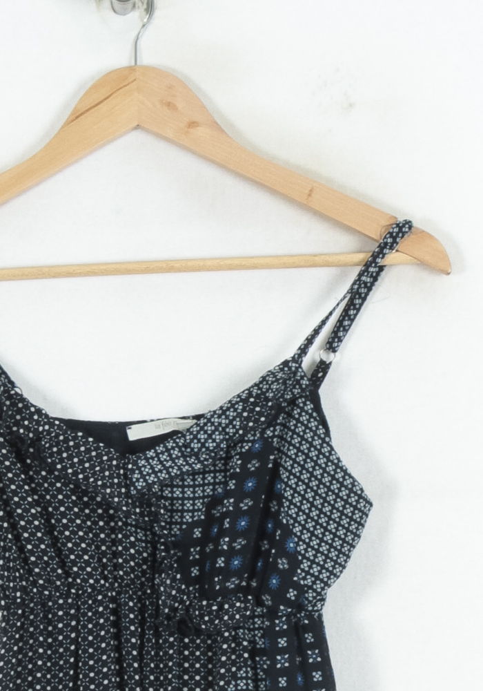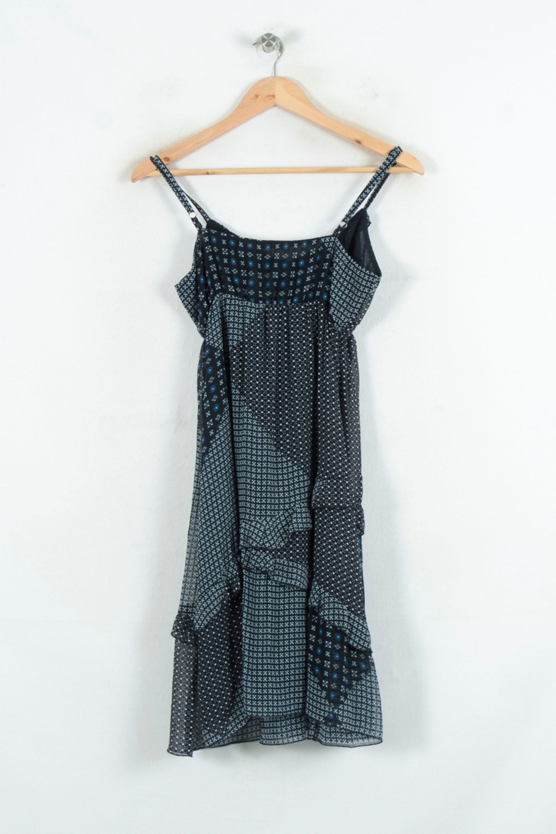 Robe bleue à bretelles fines La Fée Maraboutée, taille M/38. Confectionnée dans une matière fluide à l’imprimé géométrique patchwork, cette robe se distingue par sa coupe légère, ses détails plissés et ses jeux de motifs délicats qui lui confèrent une allure unique. Idéale pour une journée estivale ou un déjeuner en terrasse.