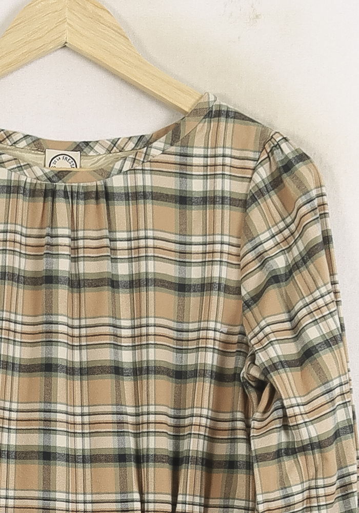 Robe longue marron à motifs, taille S/36, signée Ines de la Fressange Paris : une création élégante et intemporelle. La matière légère et les détails travaillés, comme la taille marquée et l'association de motifs à carreaux et rayures, confèrent à cette robe une touche raffinée et originale. Idéale pour une journée au bureau ou un événement chic en toute simplicité.