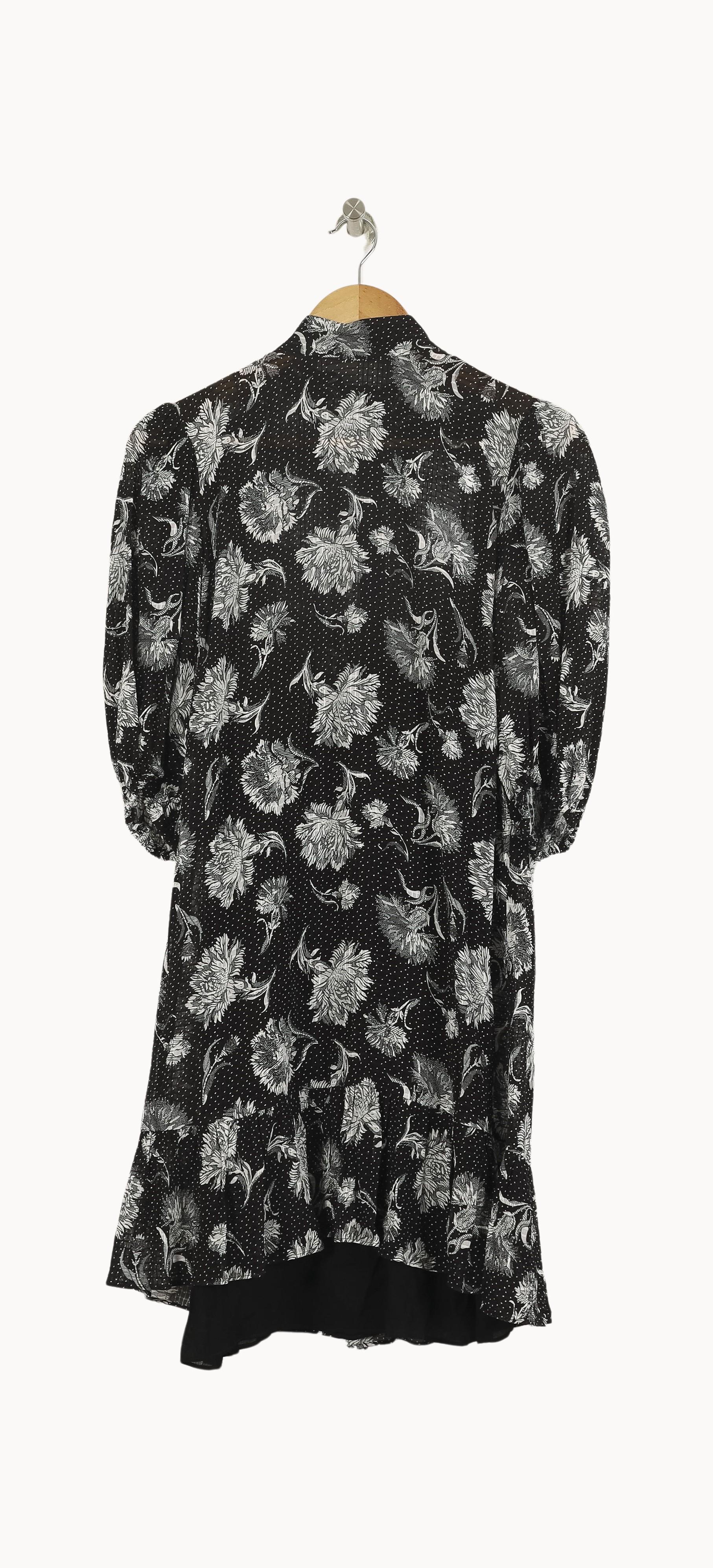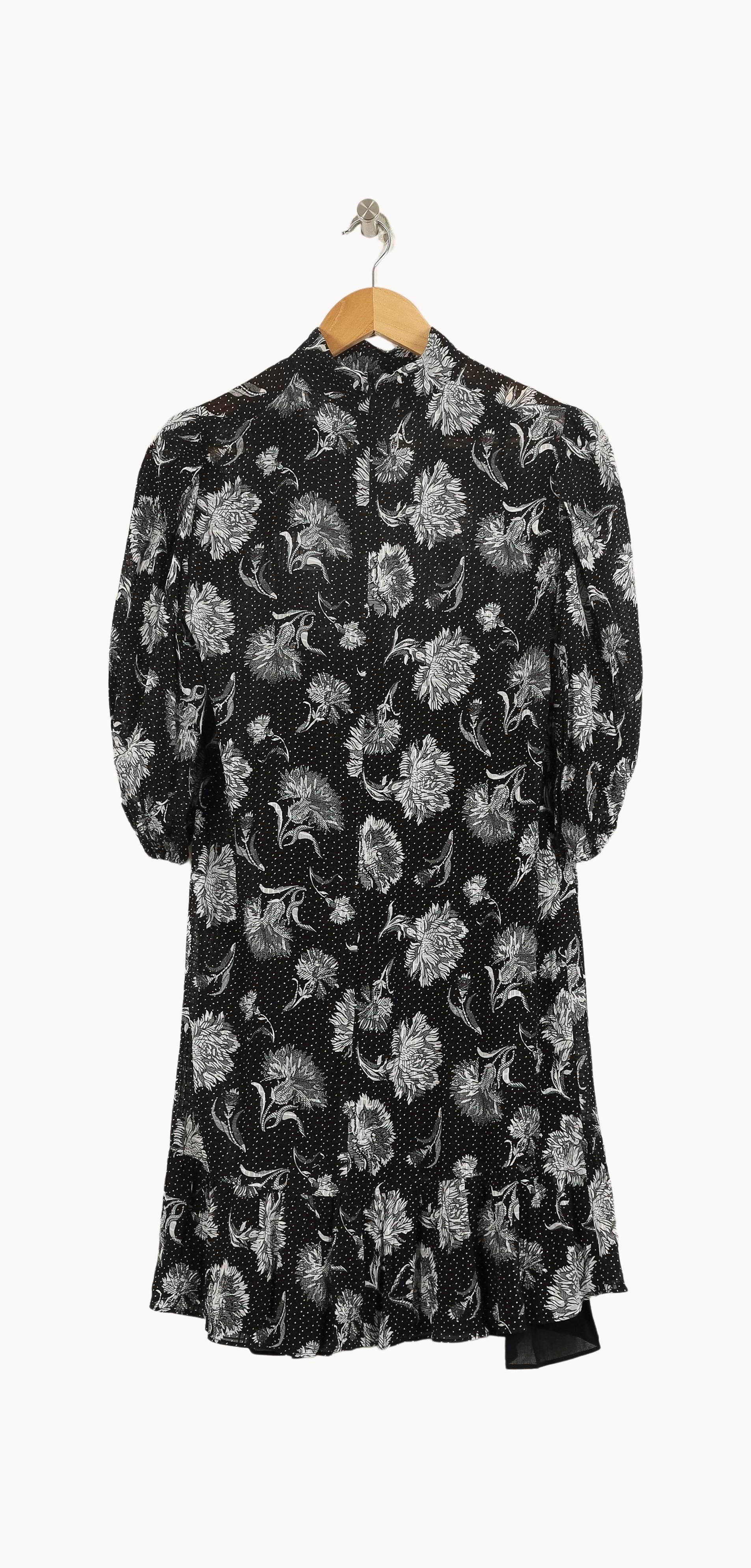 Robe courte noire à imprimé floral blanc The Kooples, taille S/36, élégante et moderne, idéale pour sublimer la silhouette. Réalisée dans une matière fluide, cette robe se distingue par ses motifs floraux délicats et ses manches légèrement bouffantes, apportant une touche d’originalité et de raffinement. Parfaite pour une soirée ou un dîner élégant où vous souhaitez allier confort et style sophistiqué.