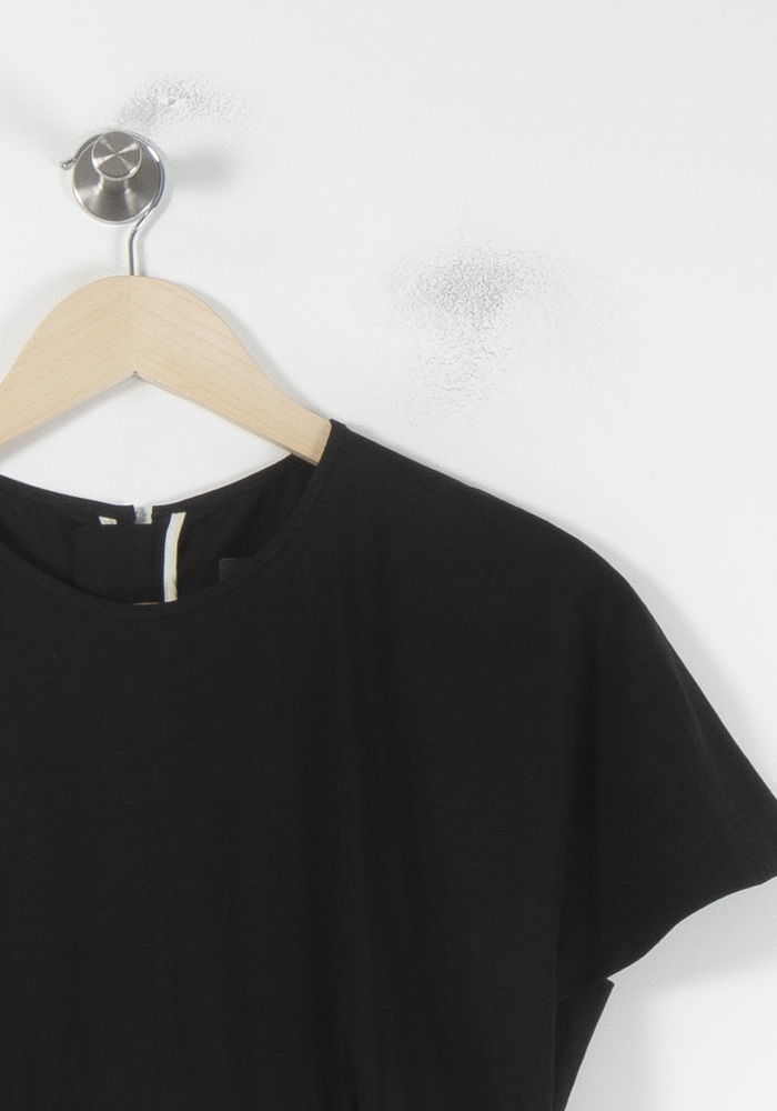 Robe noire à volants signée Isabel Marant, taille L/40, au style élégant et moderne. Confectionnée dans un mélange raffiné de lin, viscose, coton et élasthanne, cette robe se distingue par sa coupe fluide, ses manches courtes et son jeu de volants asymétriques délicatement placés sur le bas, pour une allure féminine et sophistiquée. Idéale pour un dîner chic ou une soirée habillée, elle saura mettre en valeur votre silhouette avec subtilité.