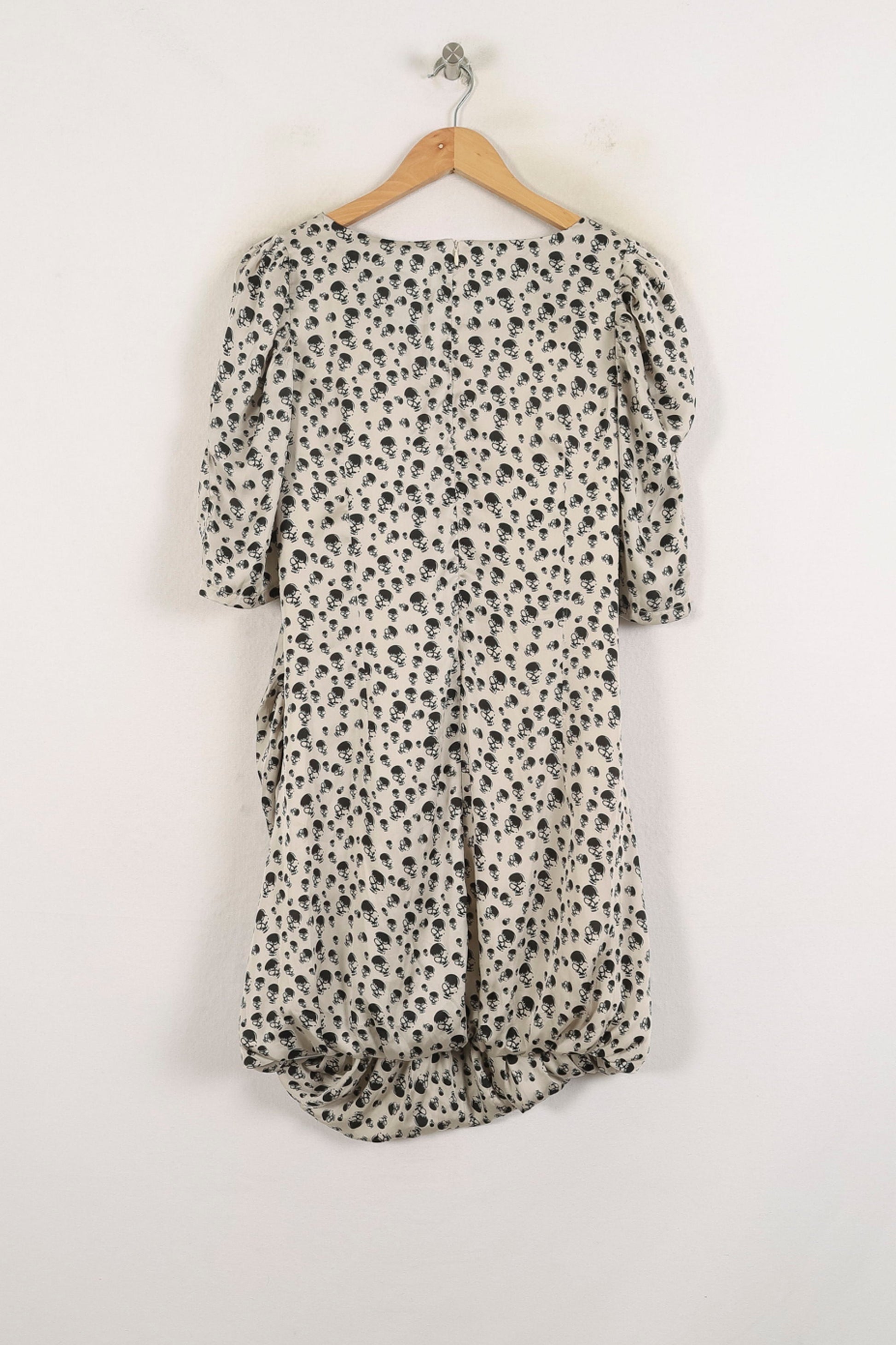 Robe courte imprimée beige Max Mara, taille L/40, à manches mi-longues légèrement bouffantes et coupe droite. Confectionnée dans une matière fluide à l’imprimé délicat de petites têtes, cette pièce se distingue par la légèreté du tissu et le travail subtil de volume au niveau des manches, lui conférant une allure singulière et raffinée. Parfaite pour un déjeuner élégant en ville ou une occasion semi-formelle où confort et style sont de mise.