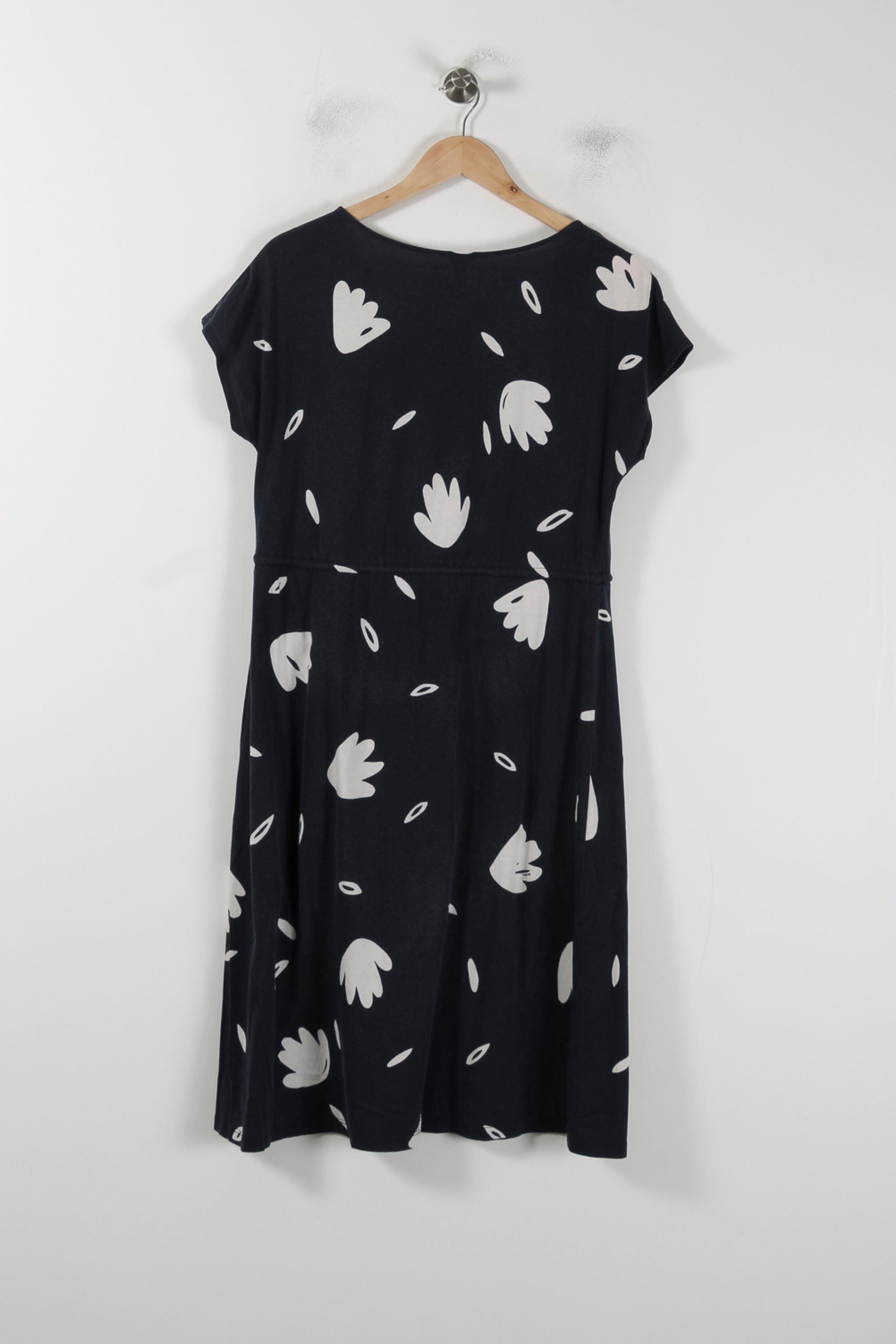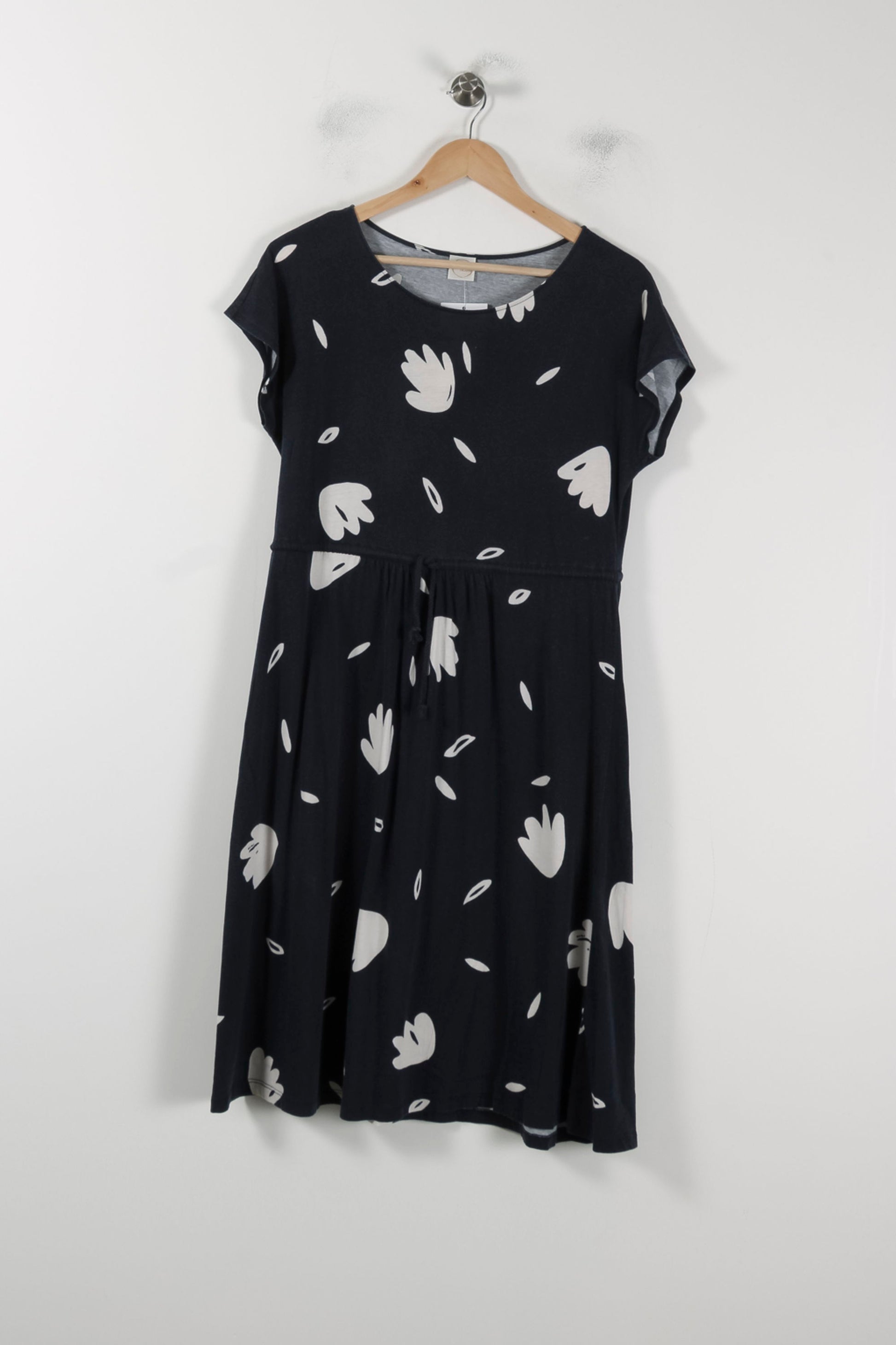 Robe bleu imprimé motifs abstraits Des Petits Hauts, taille M/38. Confectionnée en 100% coton, cette robe se distingue par sa légèreté et ses détails imprimés blancs qui lui donnent une allure moderne et originale. Parfaite pour une journée d’été, elle s’accorde aussi bien pour une sortie décontractée que pour une promenade en ville.
