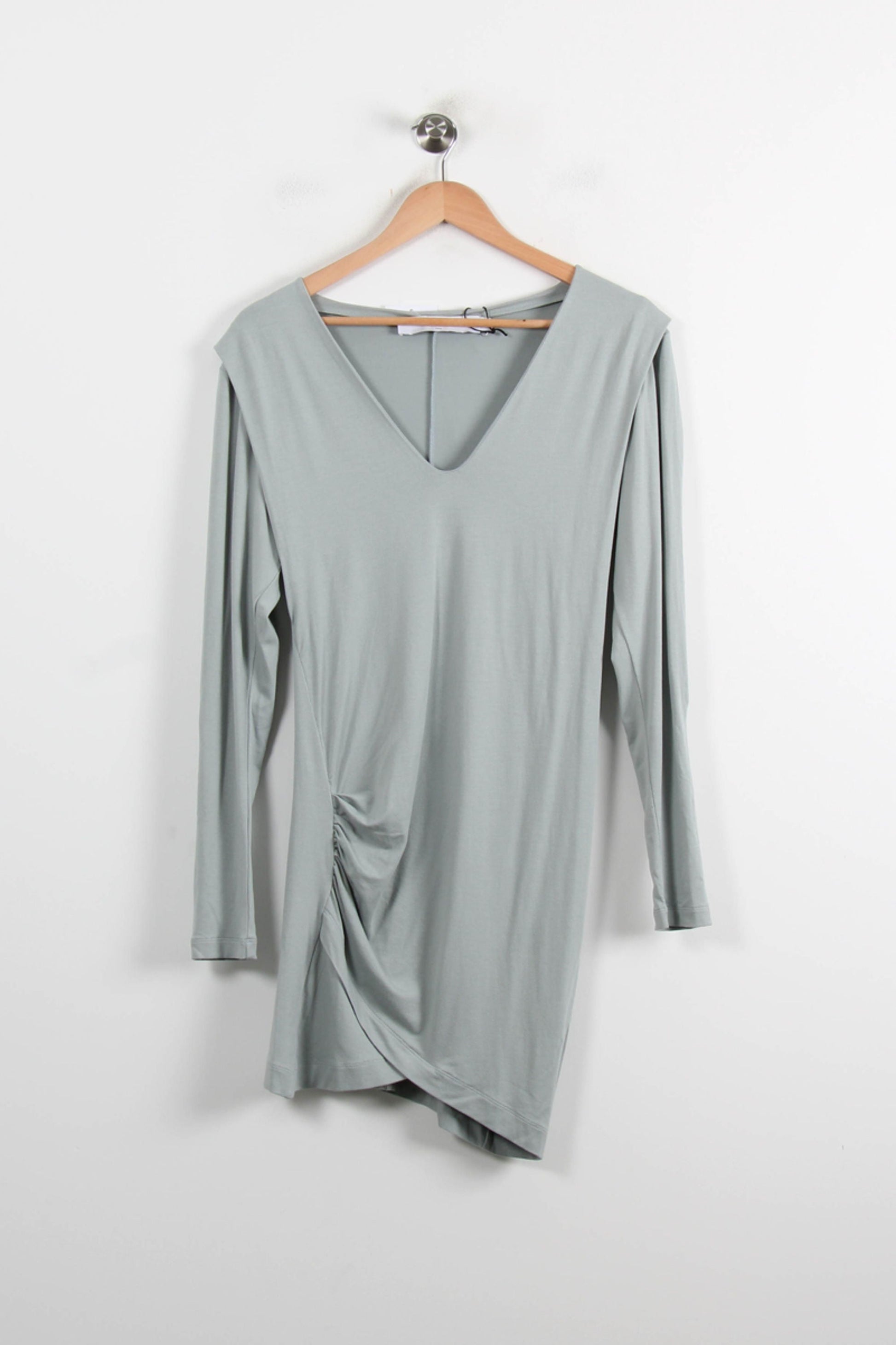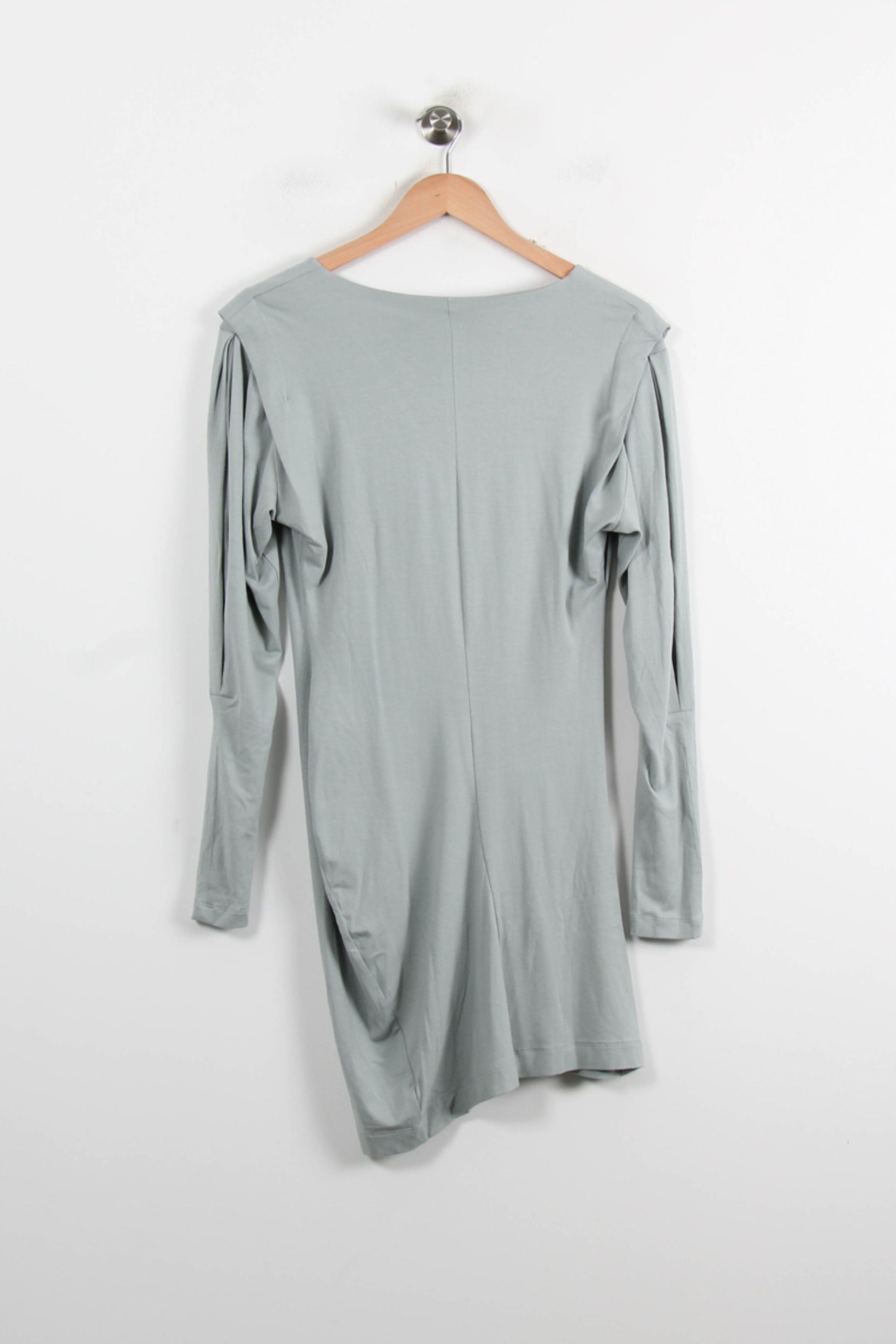 Robe bleu IRO taille S/36, à manches longues et encolure en V, alliant élégance et modernité. Confectionnée dans une matière fluide, elle se distingue par son drapé délicat sur le côté et sa coupe asymétrique, apportant une touche sophistiquée à la silhouette. Parfaite pour un cocktail ou une soirée habillée, cette robe sublime votre allure en toute simplicité.