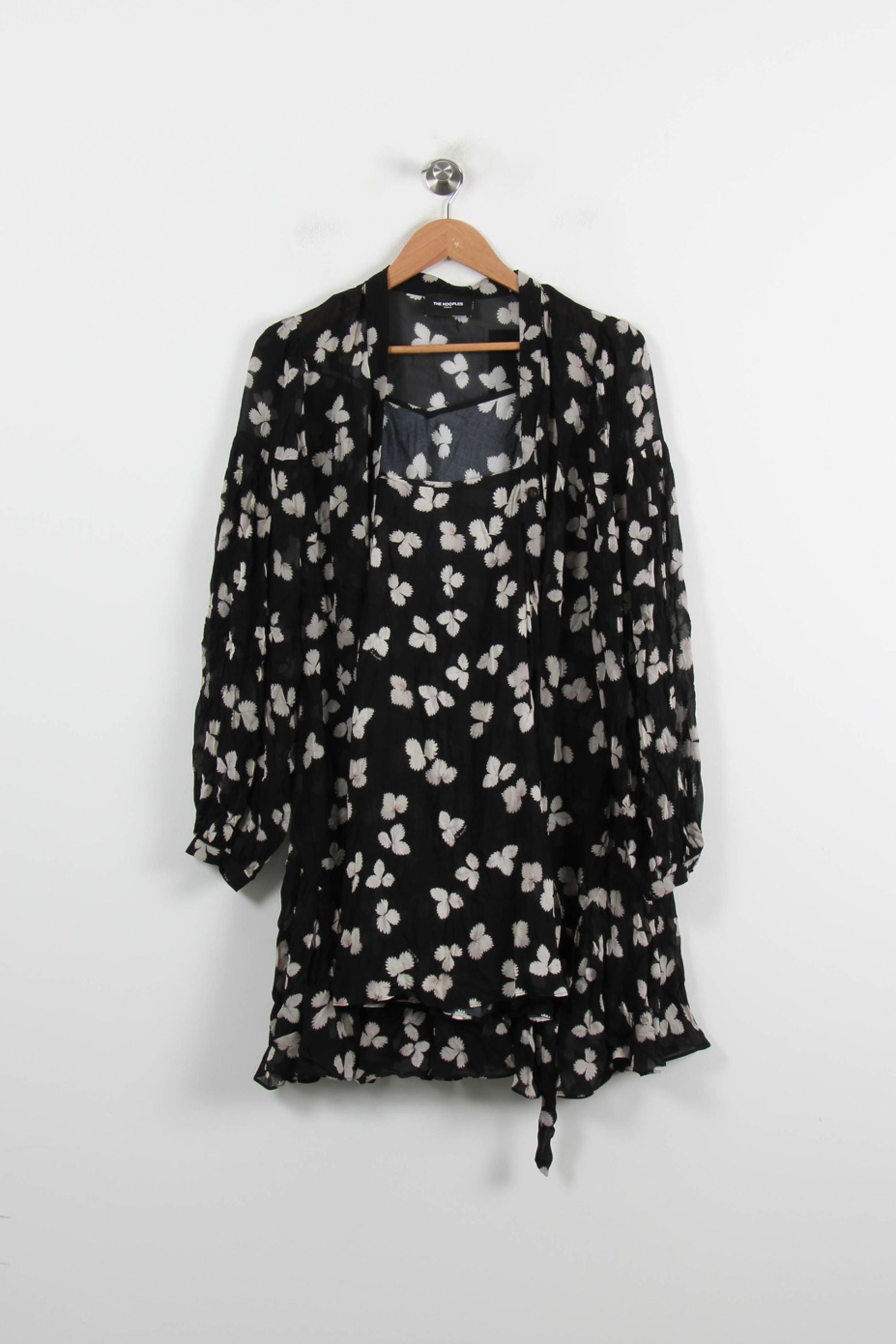 Robe courte noire à motif fleuri The Kooples, taille S/36, élégante et raffinée, parfaite pour toutes les occasions. Confectionnée dans une matière fluide et légère, elle se distingue par ses motifs floraux blancs délicatement répartis et ses manches longues bouffantes pour une silhouette féminine et moderne. Idéale pour un dîner chic ou une sortie entre amis en soirée.