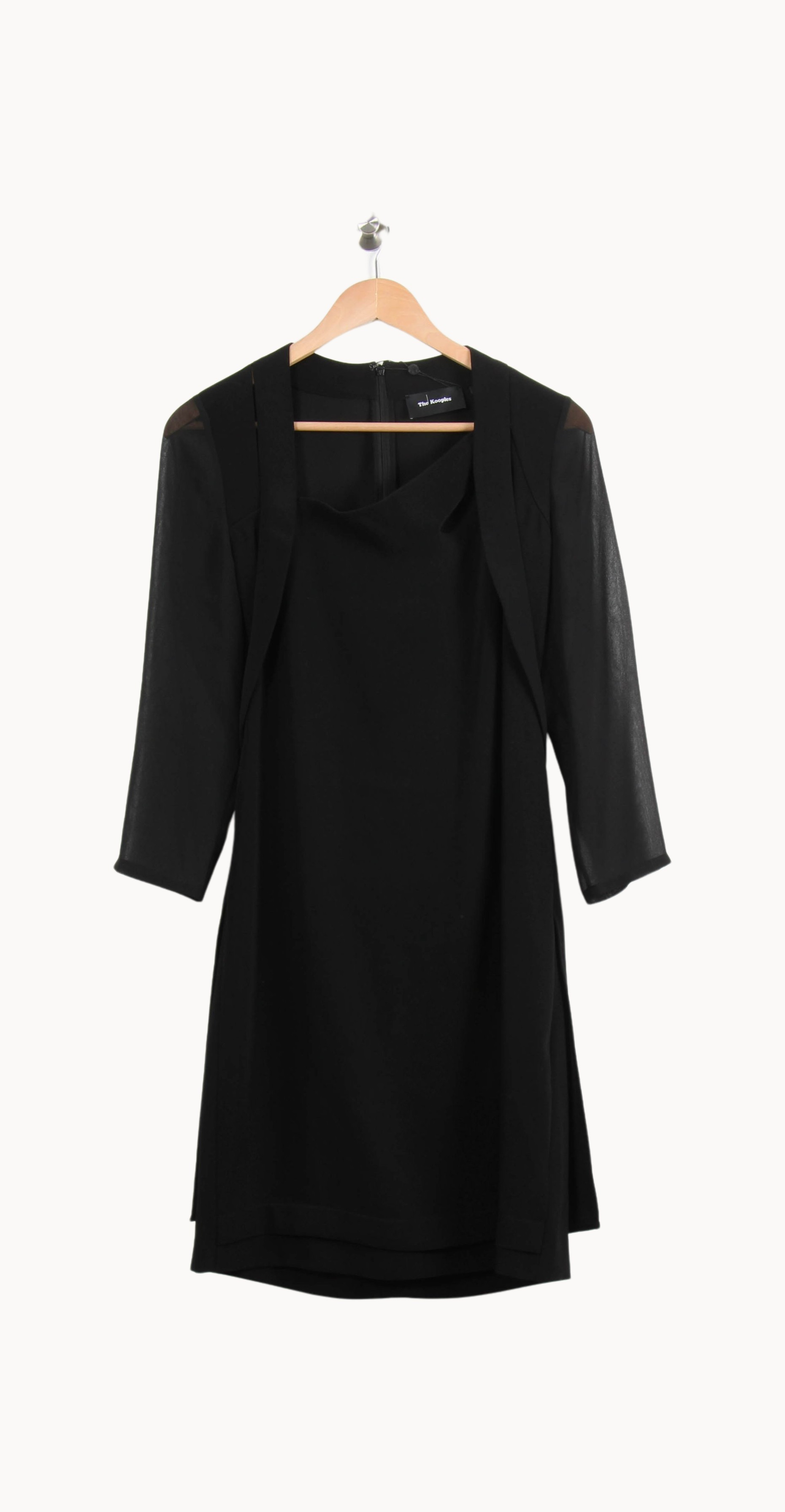 Robe noire The Kooples taille M/38, à manches trois-quarts et coupe droite, idéale pour une allure élégante et contemporaine. Confectionnée dans une matière fluide, elle se distingue par ses manches légèrement transparentes qui apportent une touche de modernité et de raffinement. Parfait pour une soirée habillée, un cocktail ou un événement professionnel sophistiqué.